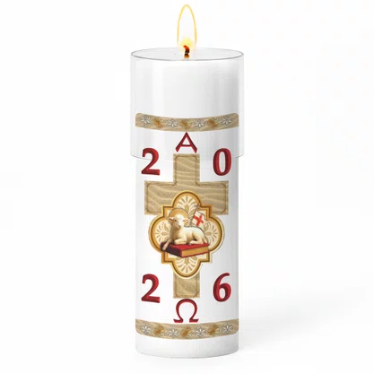 Círio Pascal Adesivado Cordeiro Marfim 2026 - 20 X 7 cm Branco