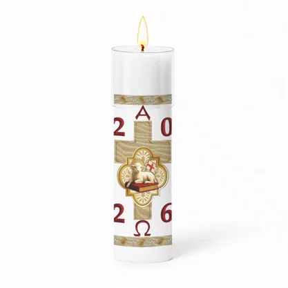 Círio Pascal Adesivado Cordeiro Marfim 2026 - 30 X 7 cm Branco