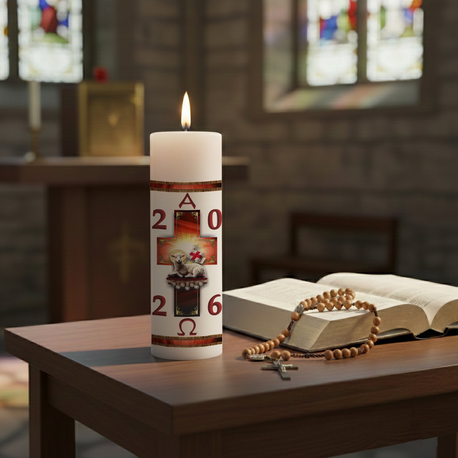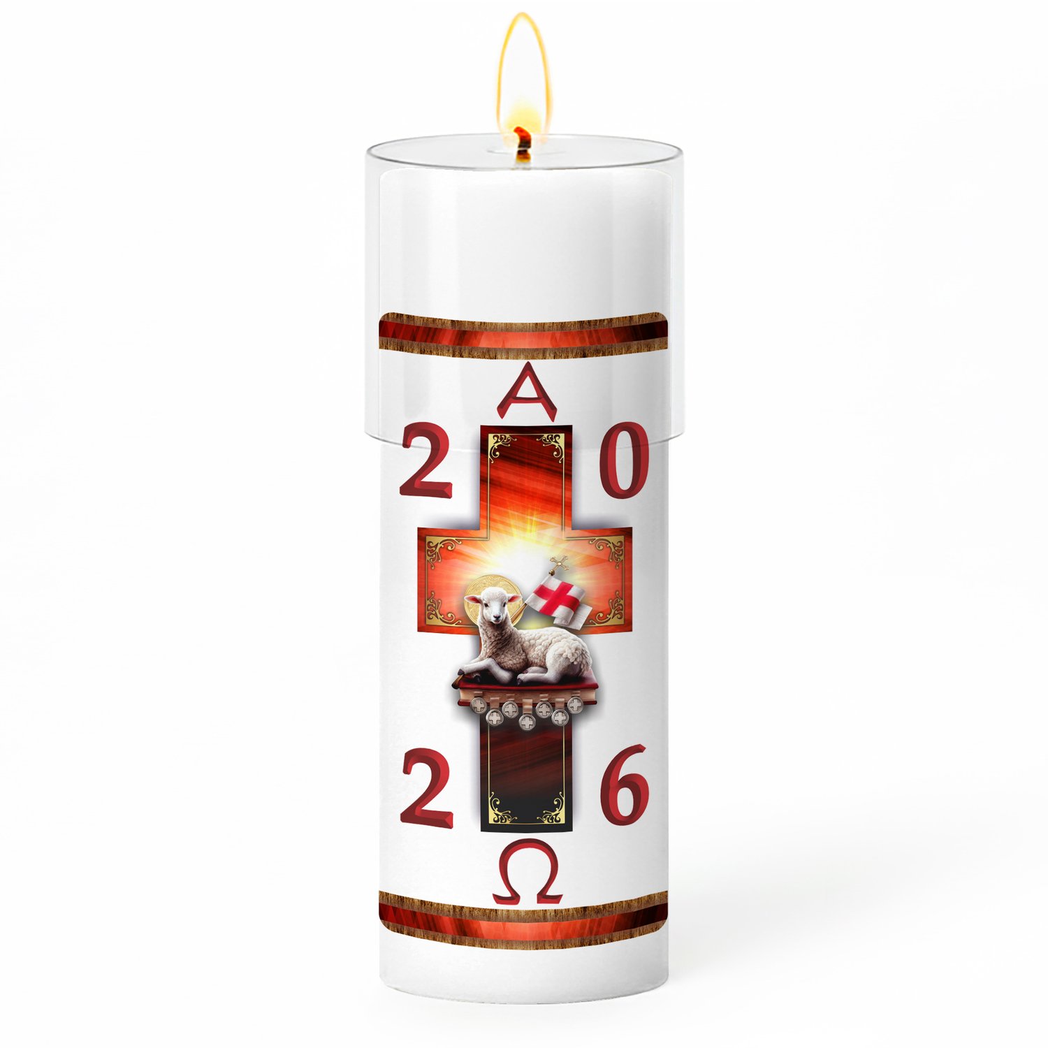 Círio Pascal Adesivado Cordeiro Sete Selos 2026 - 20 X 7 cm Branco