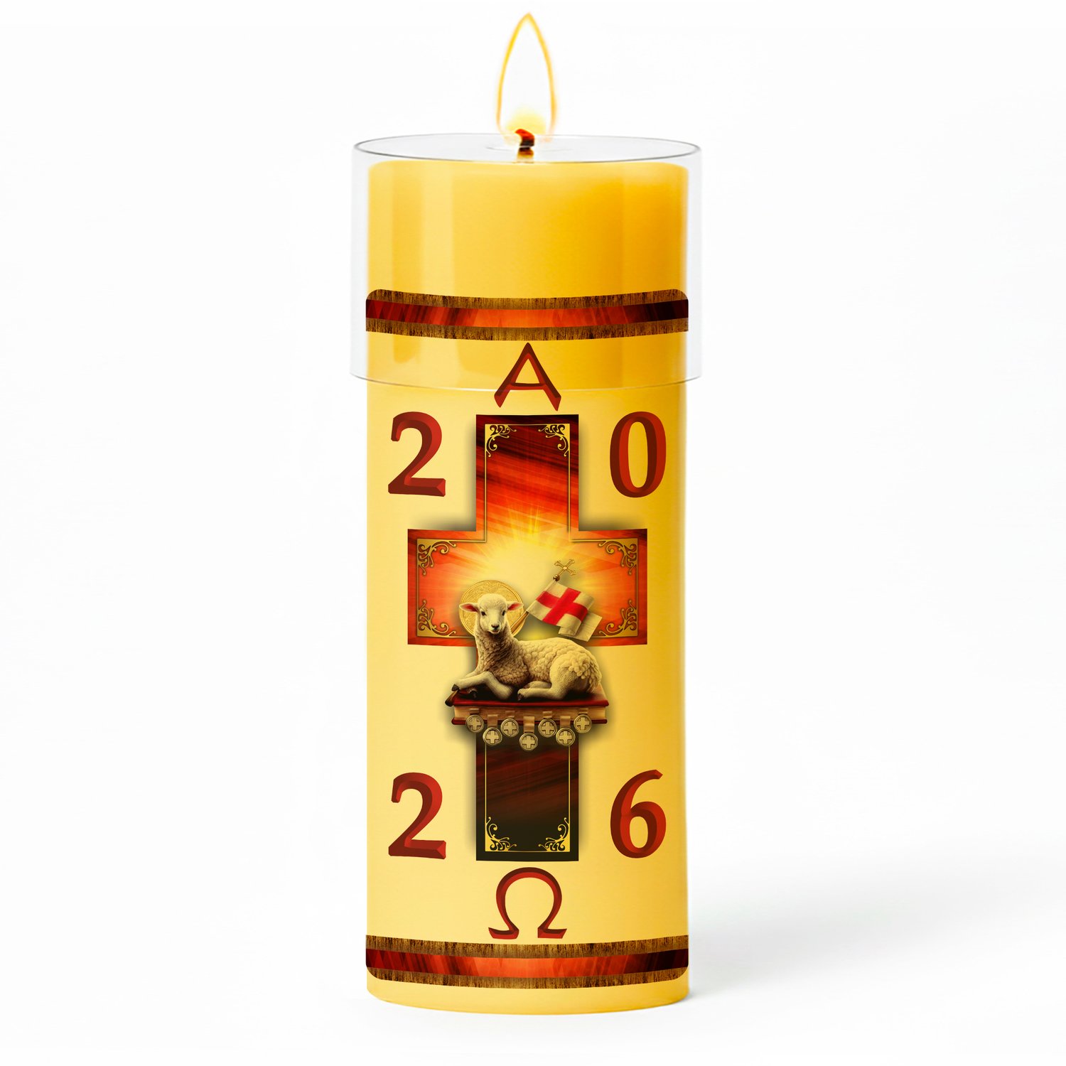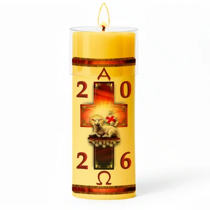 Círio Pascal Adesivado Cordeiro Sete Selos 2026 - 30 X 9 cm Amarelo