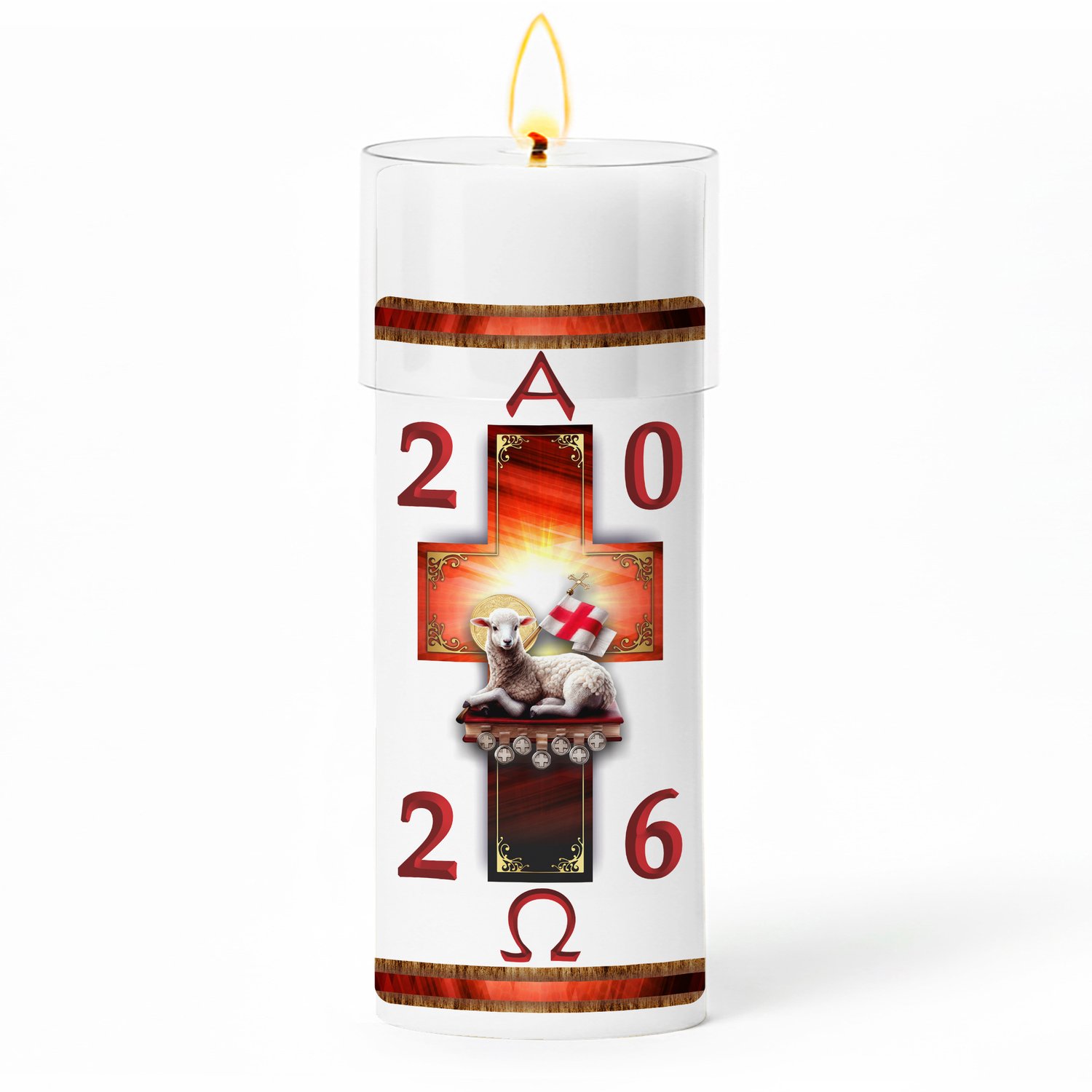 Círio Pascal Adesivado Cordeiro Sete Selos 2026 - 30 X 9 cm Branco
