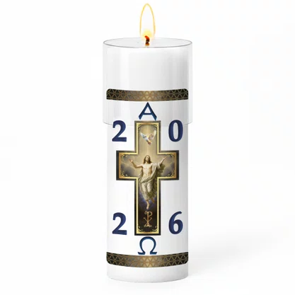 Círio Pascal Adesivado Cristo Ressuscitado 2026 - 20 X 7 cm Branco