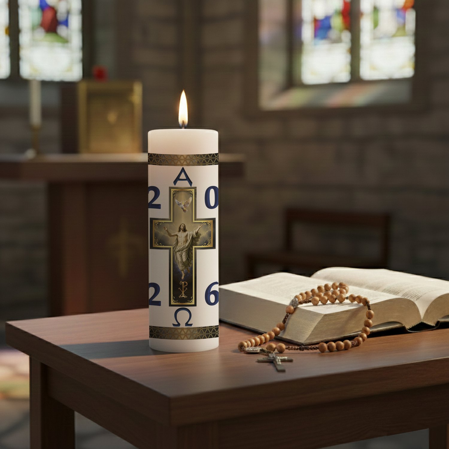 Círio Pascal Adesivado Cristo Ressuscitado 2026 - 30 X 7 cm Branco