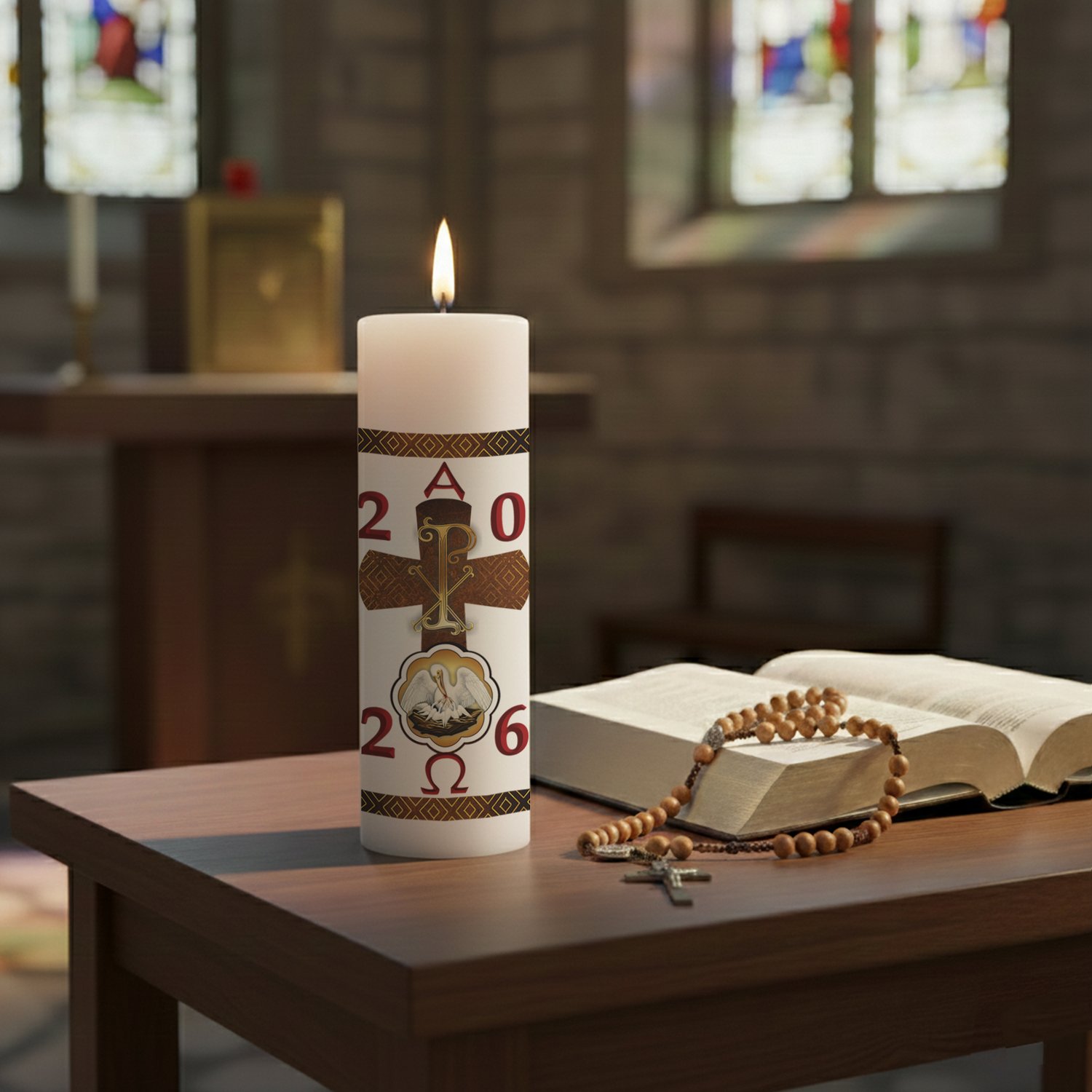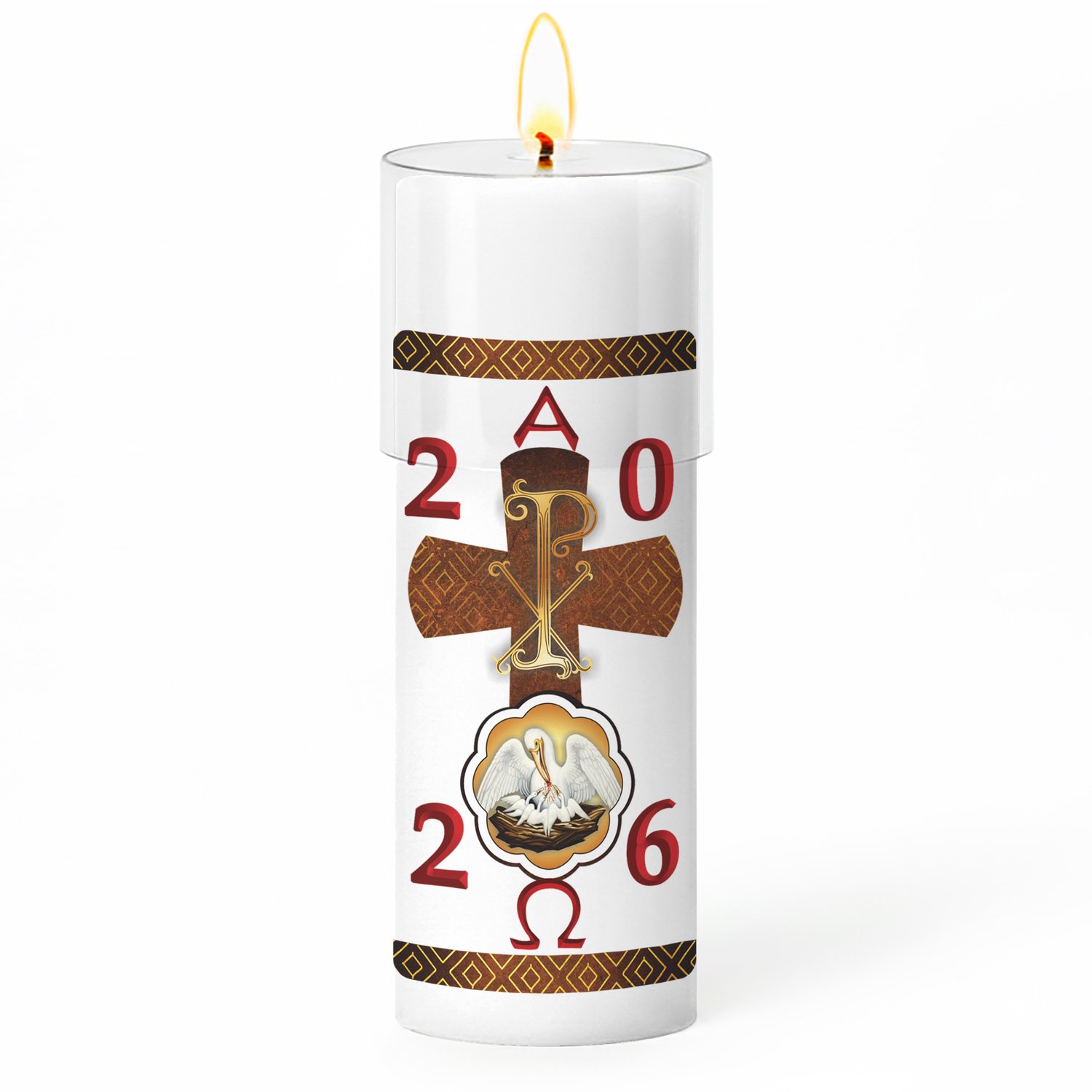 Círio Pascal Adesivado Pelicano 2026 - 20 X 7 cm Branco
