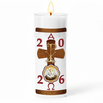 Círio Pascal Adesivado Pelicano 2026 - 30 X 9 cm Branco