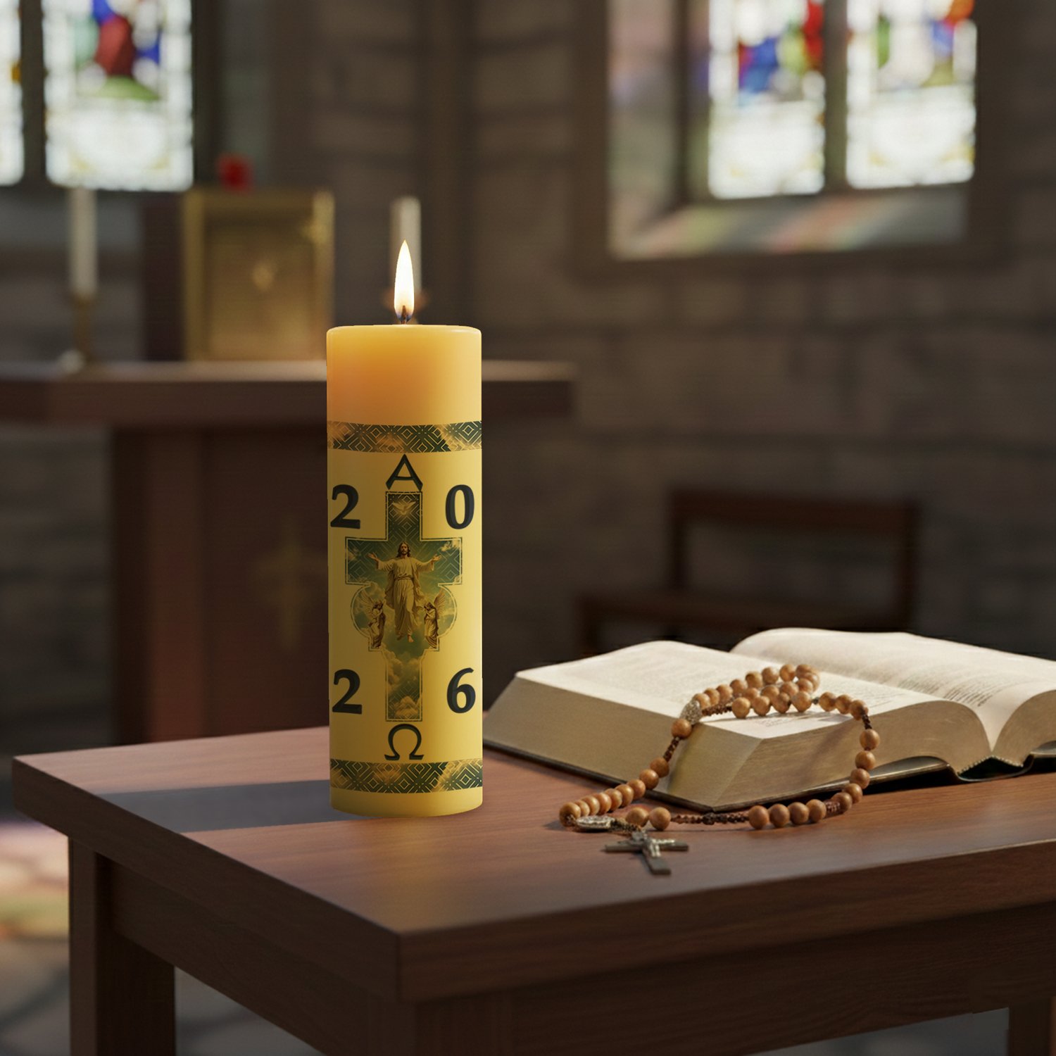 Círio Pascal Adesivado Ressuscitado Anjo Adoradores 2026 - 20 X 7 cm Amarelo