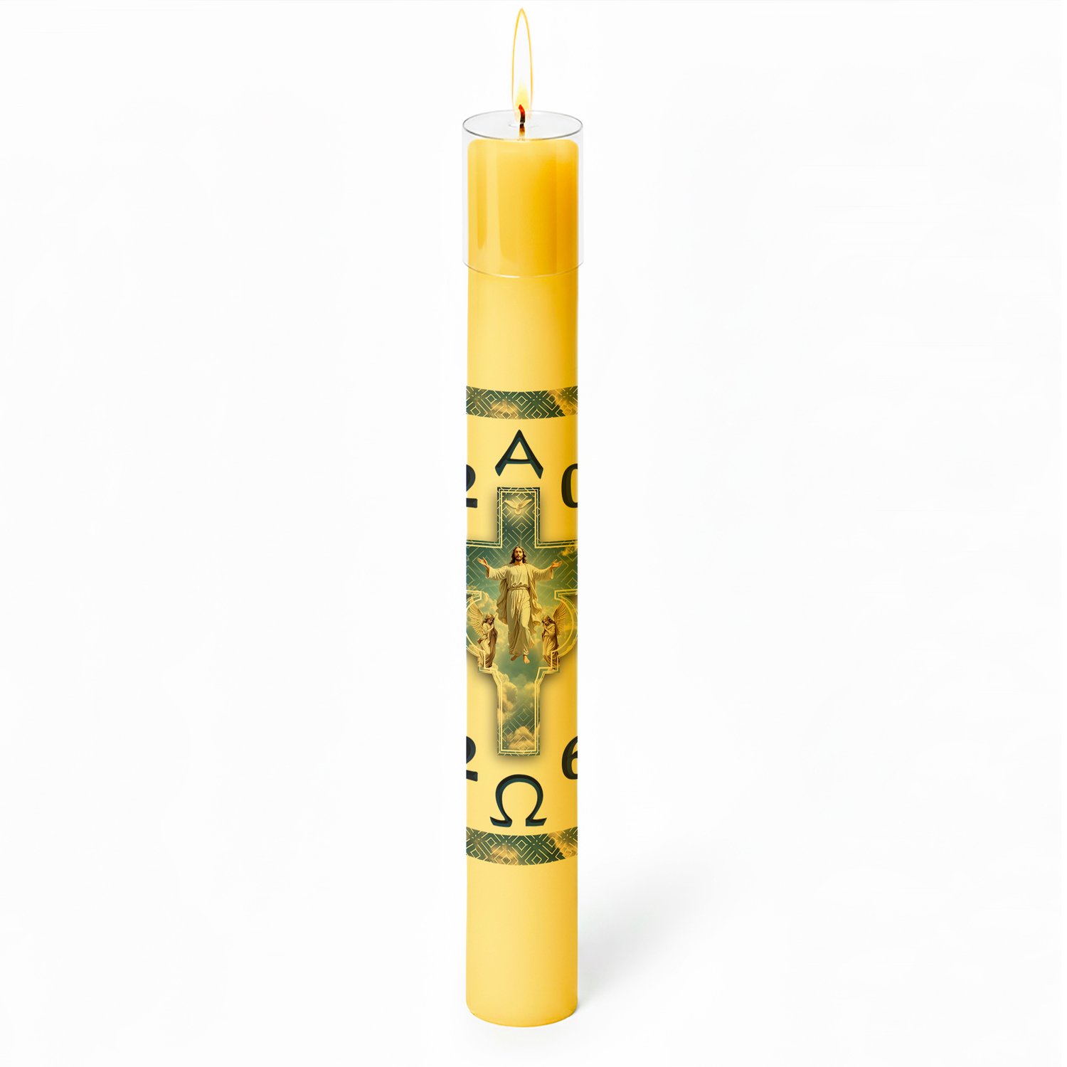 Círio Pascal Adesivado Ressuscitado Anjo Adoradores 2026 - 75 X 7 cm Amarelo