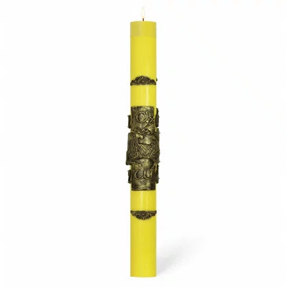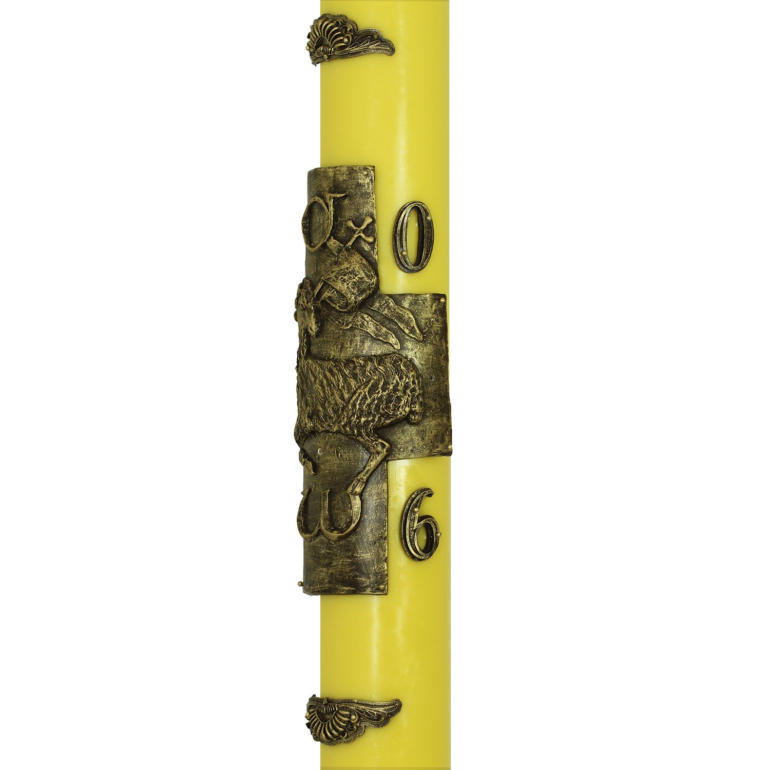 Círio Pascal Relevo Cordeiro Bronze 2026 - 90 X 9 cm Amarelo
