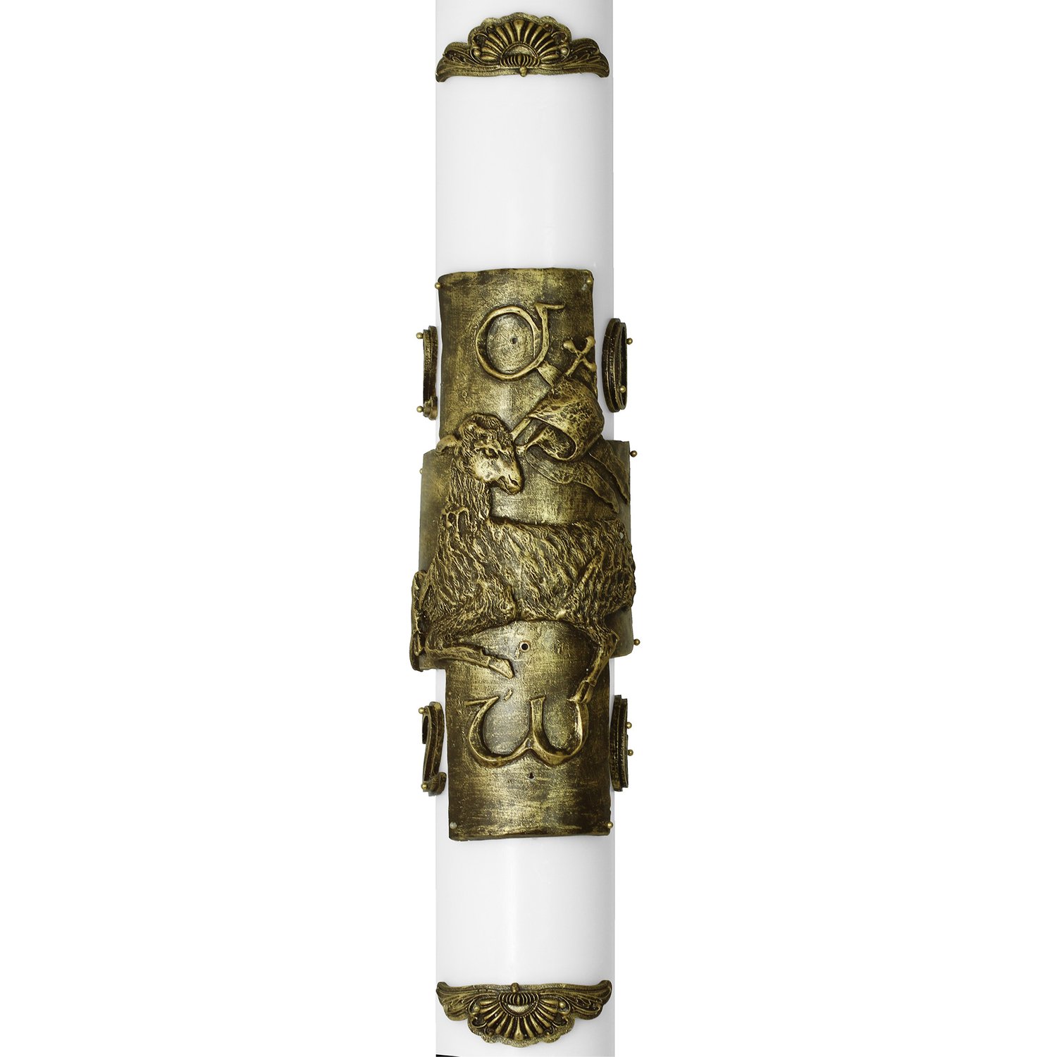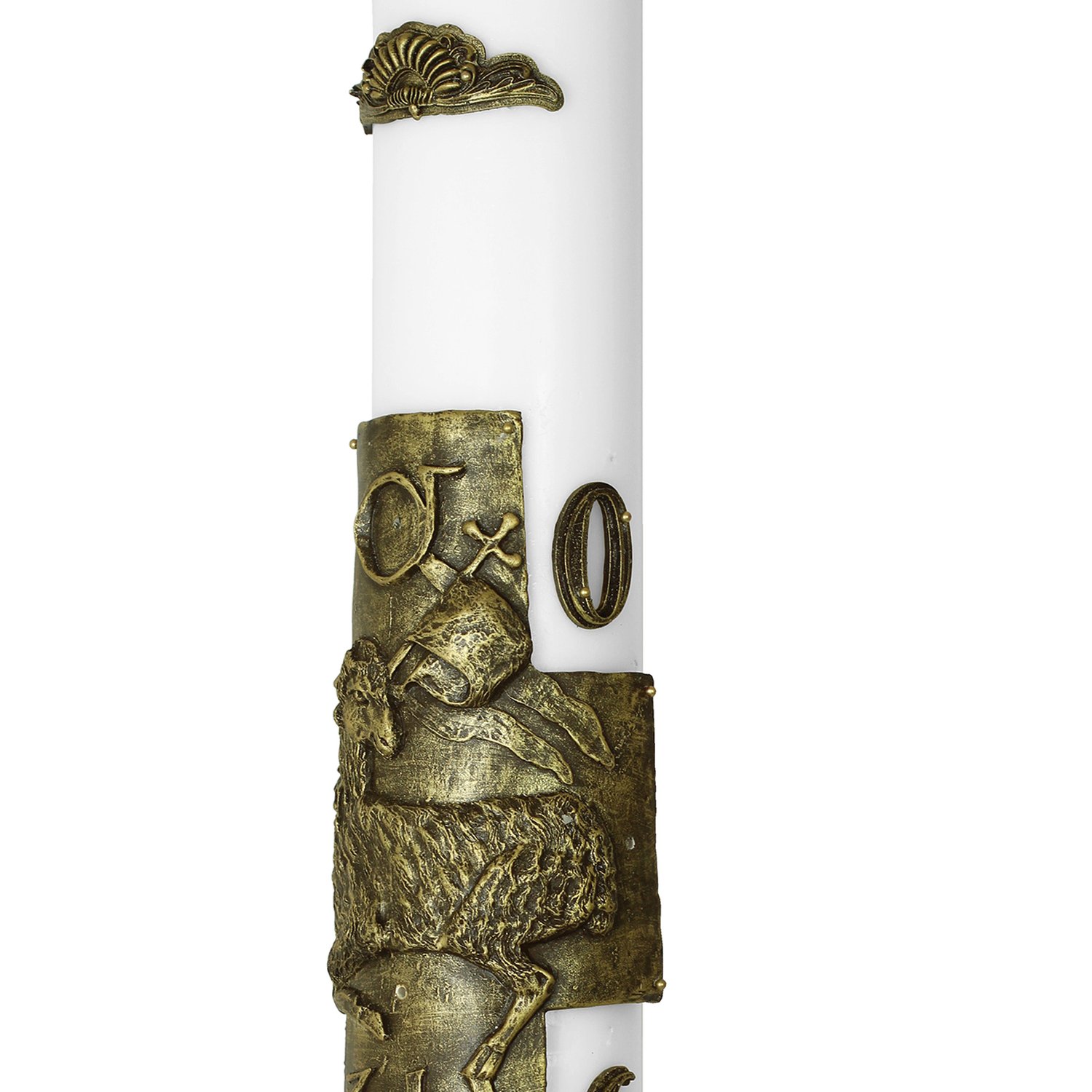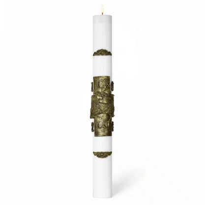 Círio Pascal Relevo Cordeiro Bronze 2026 - 90 X 9 cm Branco