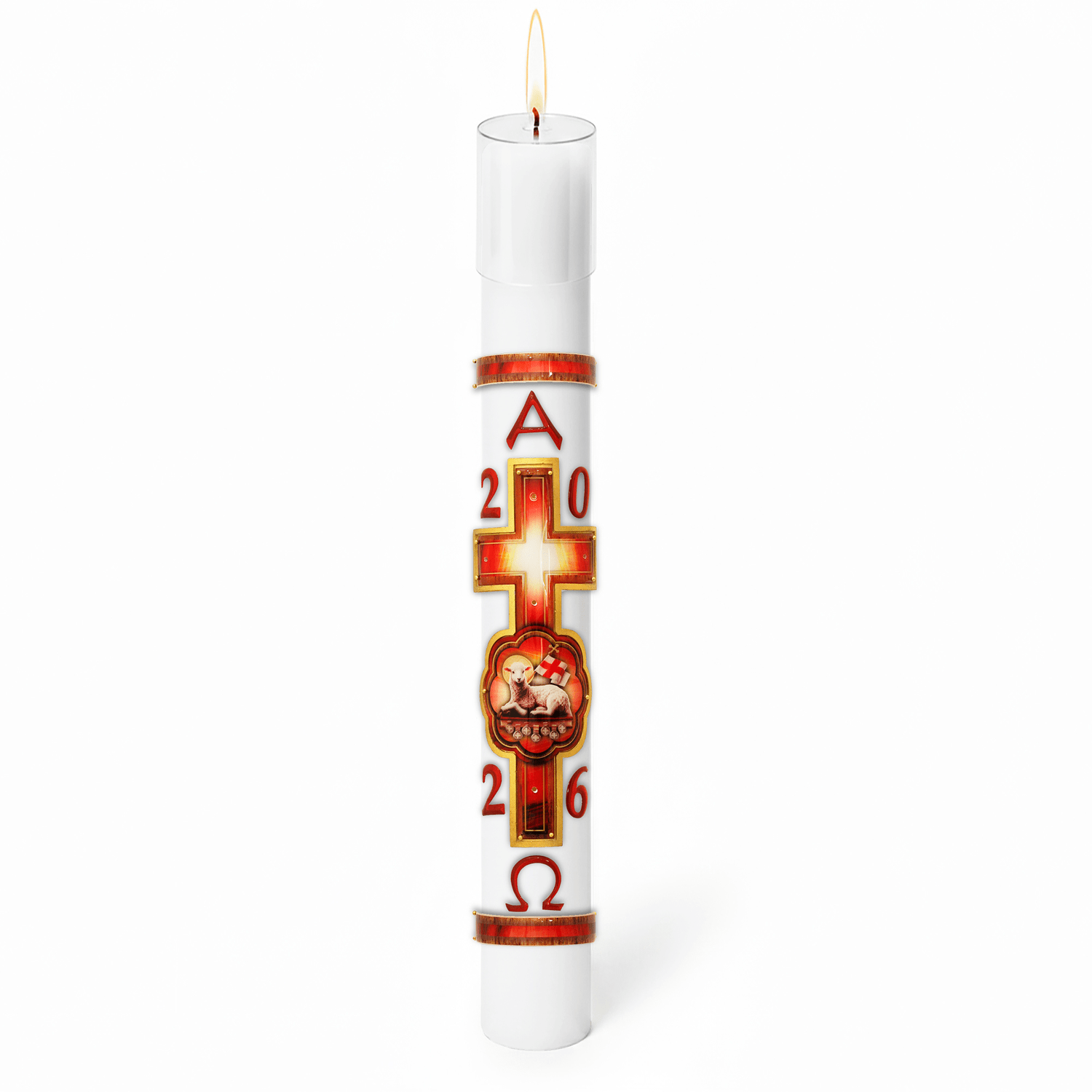 Círio Pascal Relevo Cordeiro Sete Selos 2026 - 75 X 7 cm Branco