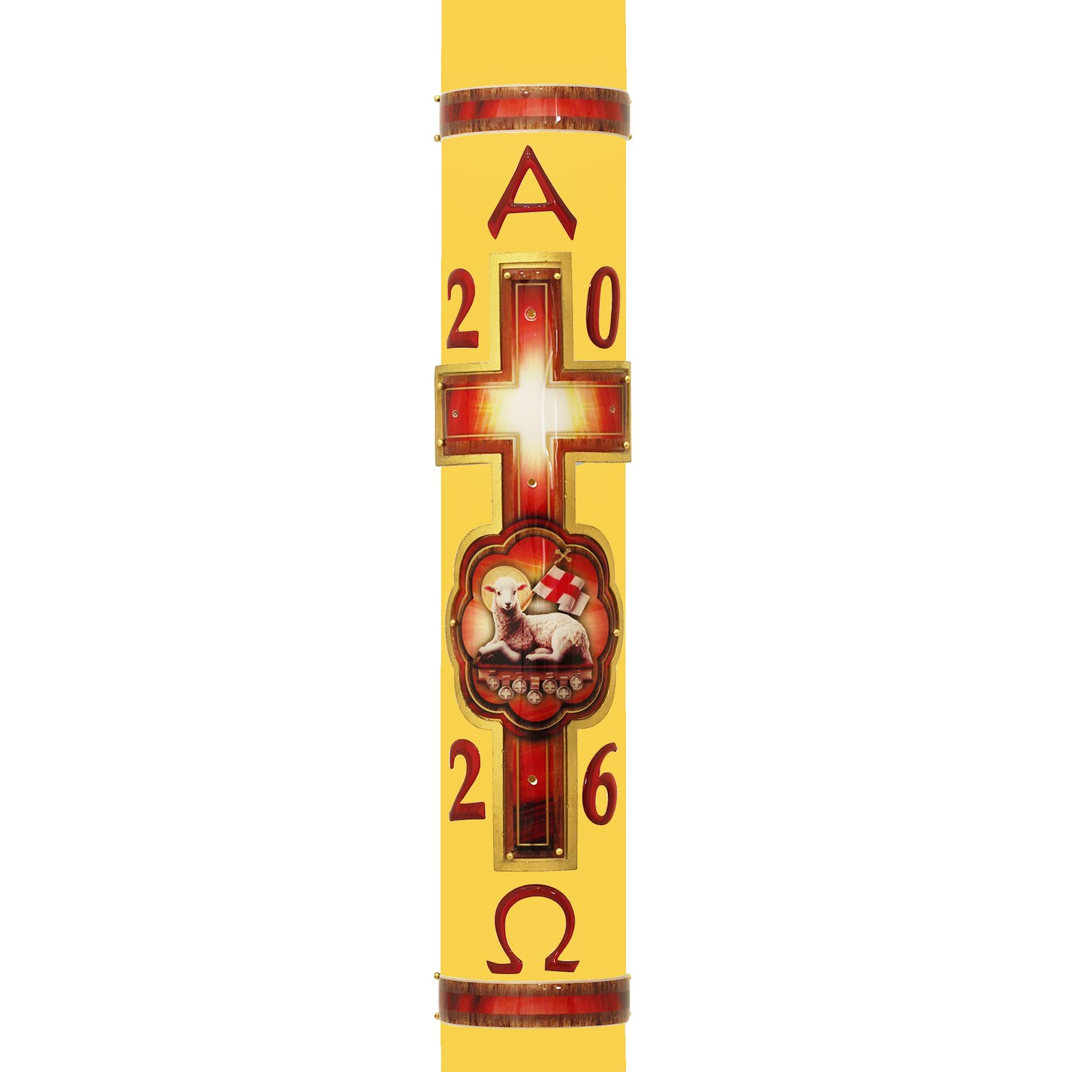 Círio Pascal Relevo Cordeiro Sete Selos 2026 - 90 X 9 cm Amarelo