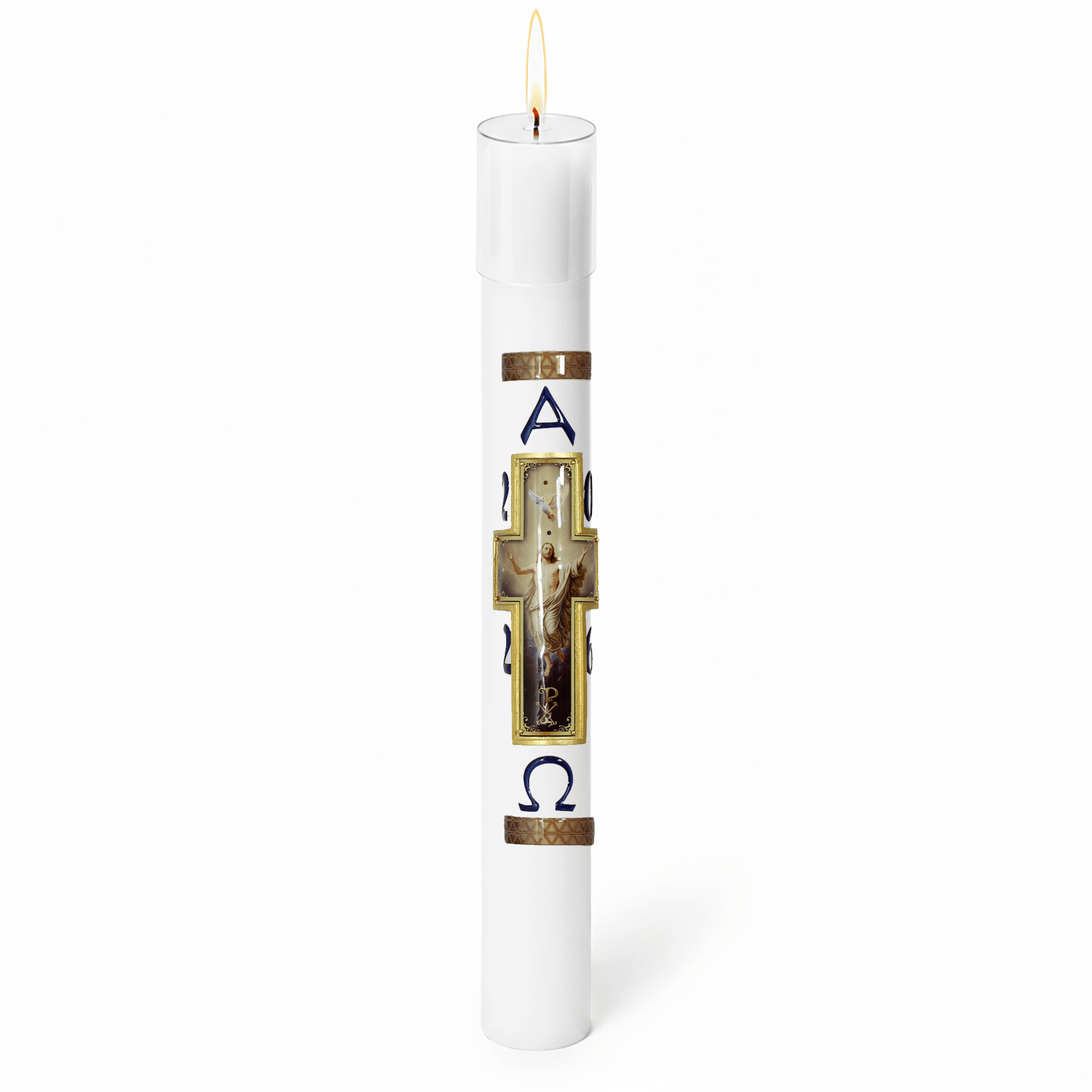 Círio Pascal Relevo Cristo Ressuscitado 2026 - 75 X 7 cm Branco