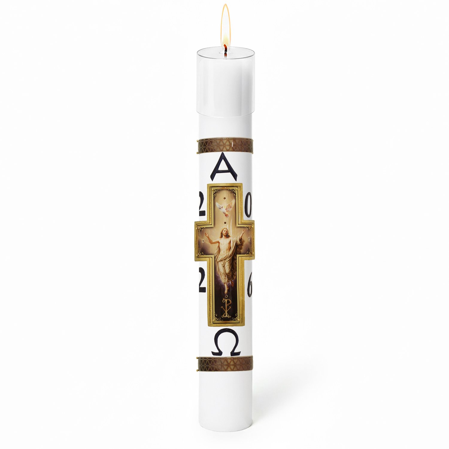 Círio Pascal Relevo Cristo Ressuscitado 2026 - 75 X 9 cm Branco
