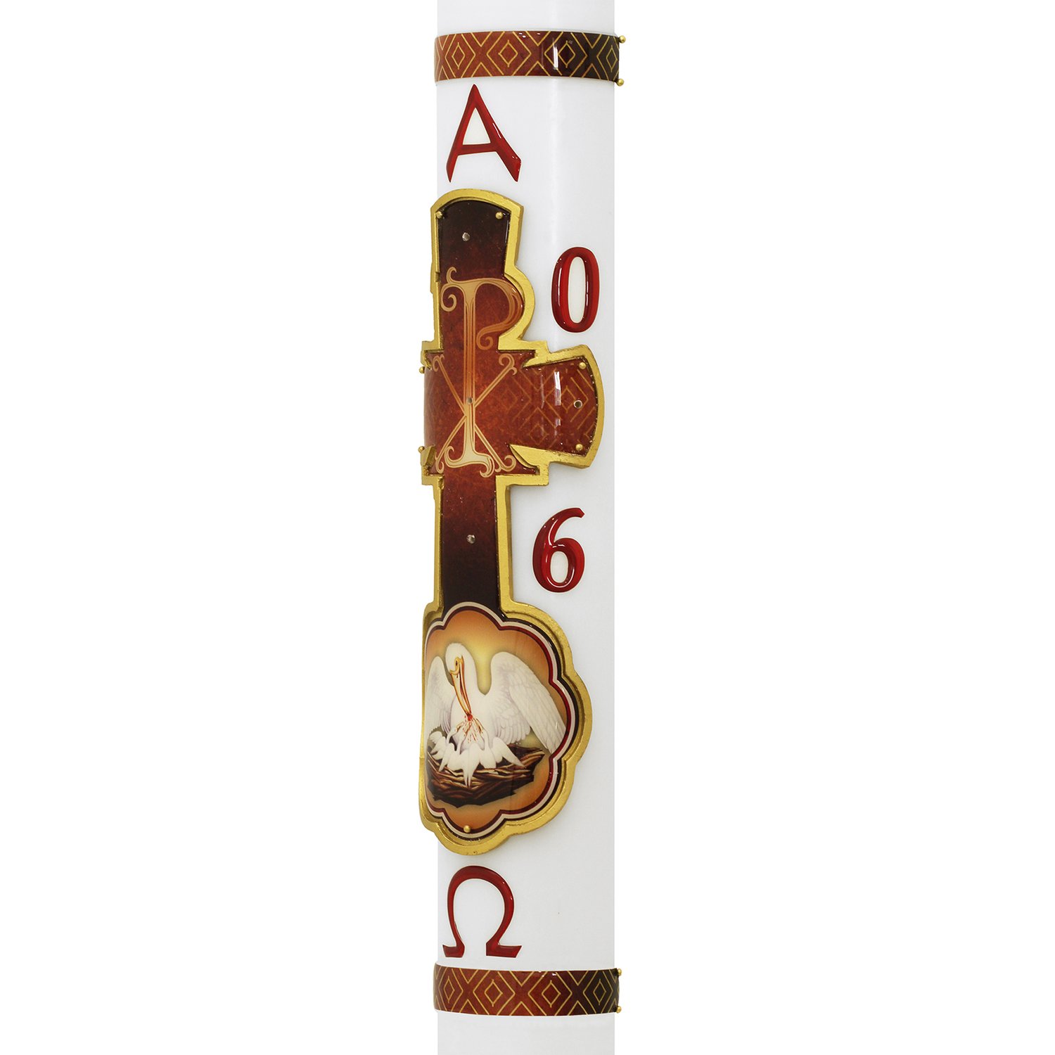 Círio Pascal Relevo Pelicano 2026 - 75 X 9 cm Branco