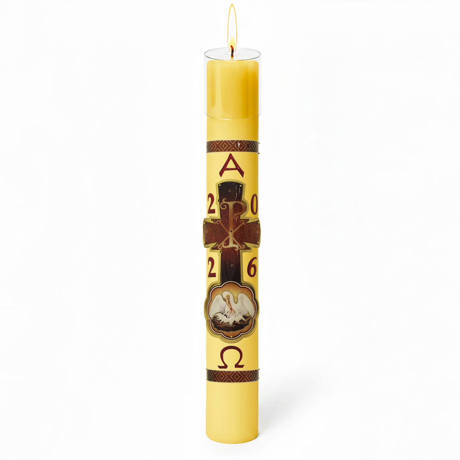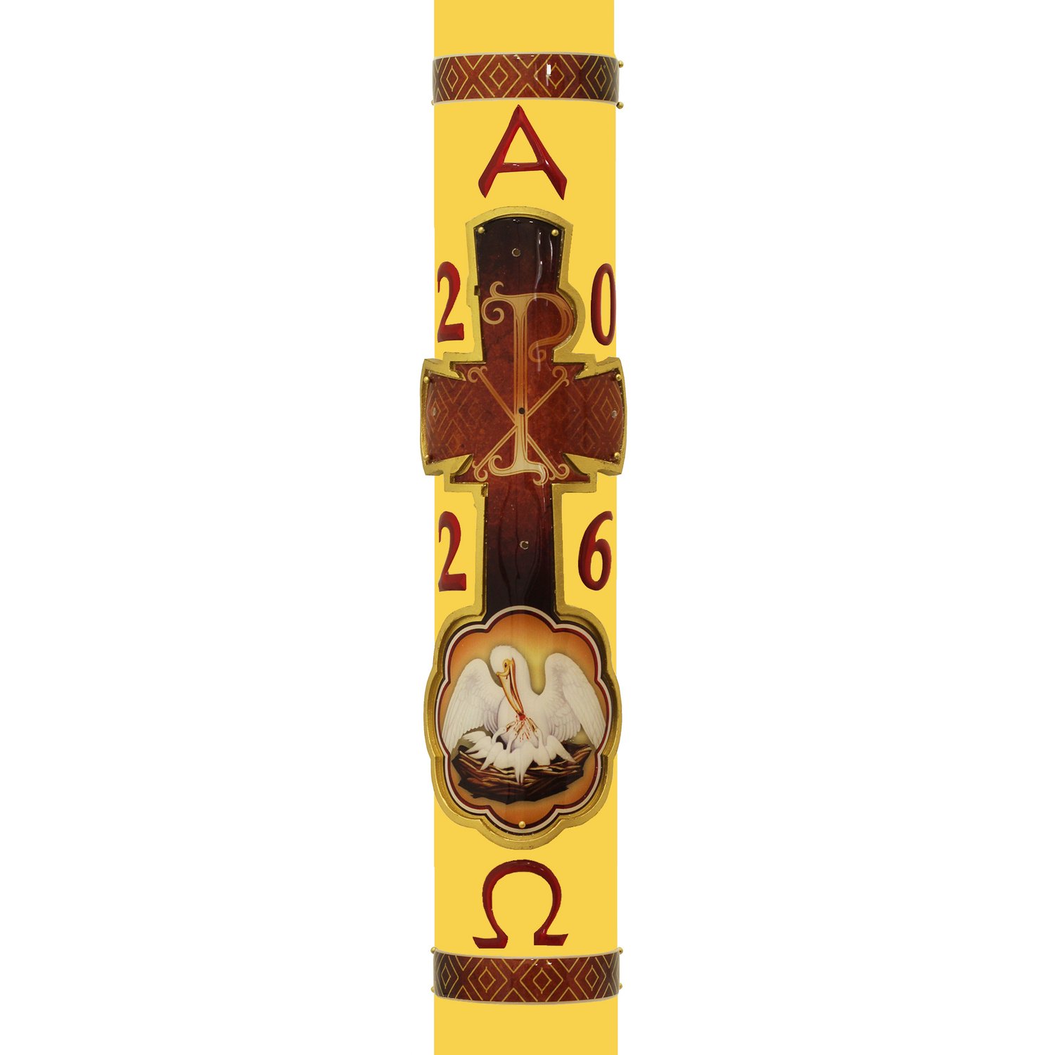 Círio Pascal Relevo Pelicano 2026 - 90 X 9 cm Amarelo