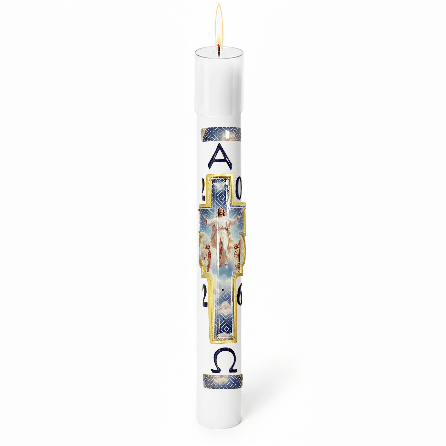 Círio Pascal Relevo Ressuscitado Anjos Adoradores 2026 - 75 X 7 cm Branco
