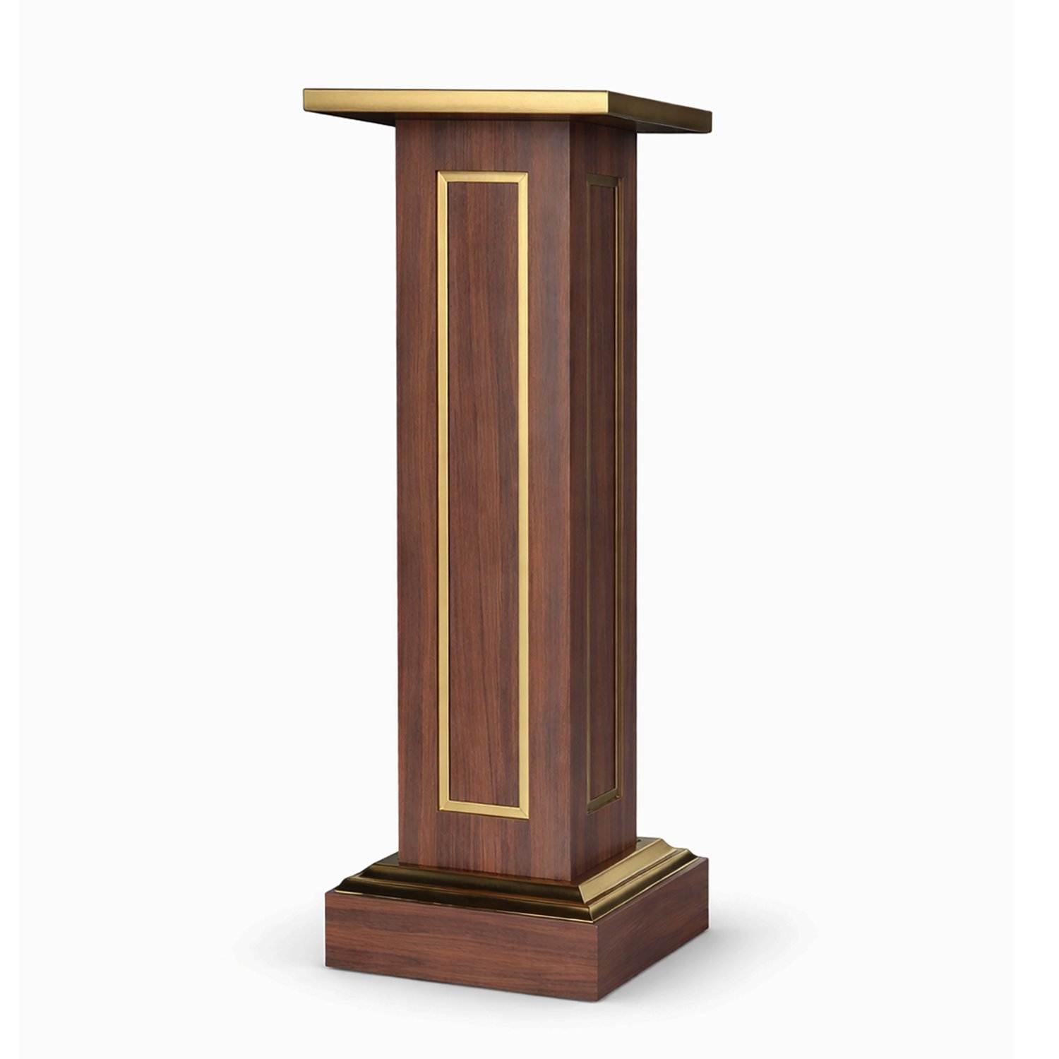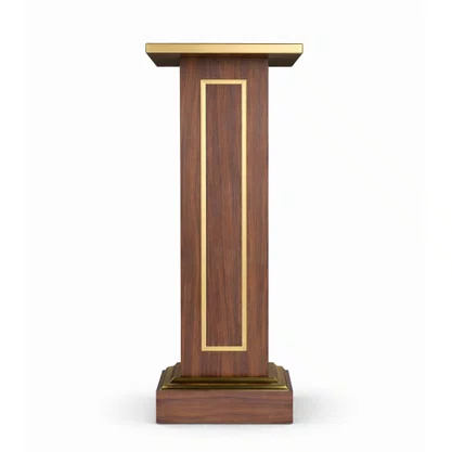 Coluna Pedestal em Madeira Escura para Imagens Detalhe Dourado
