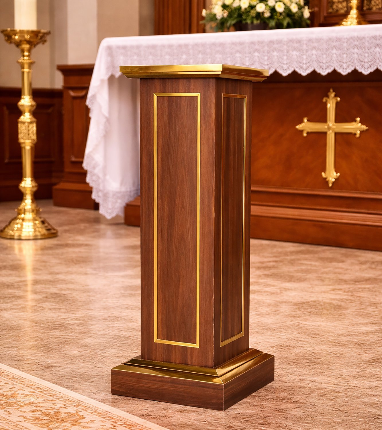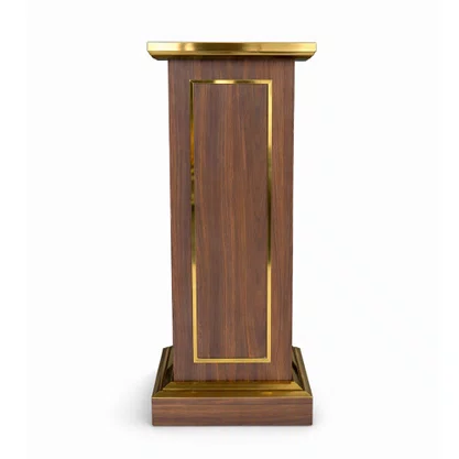Coluna Pedestal em Madeira Escura para Imagens Detalhe Dourado