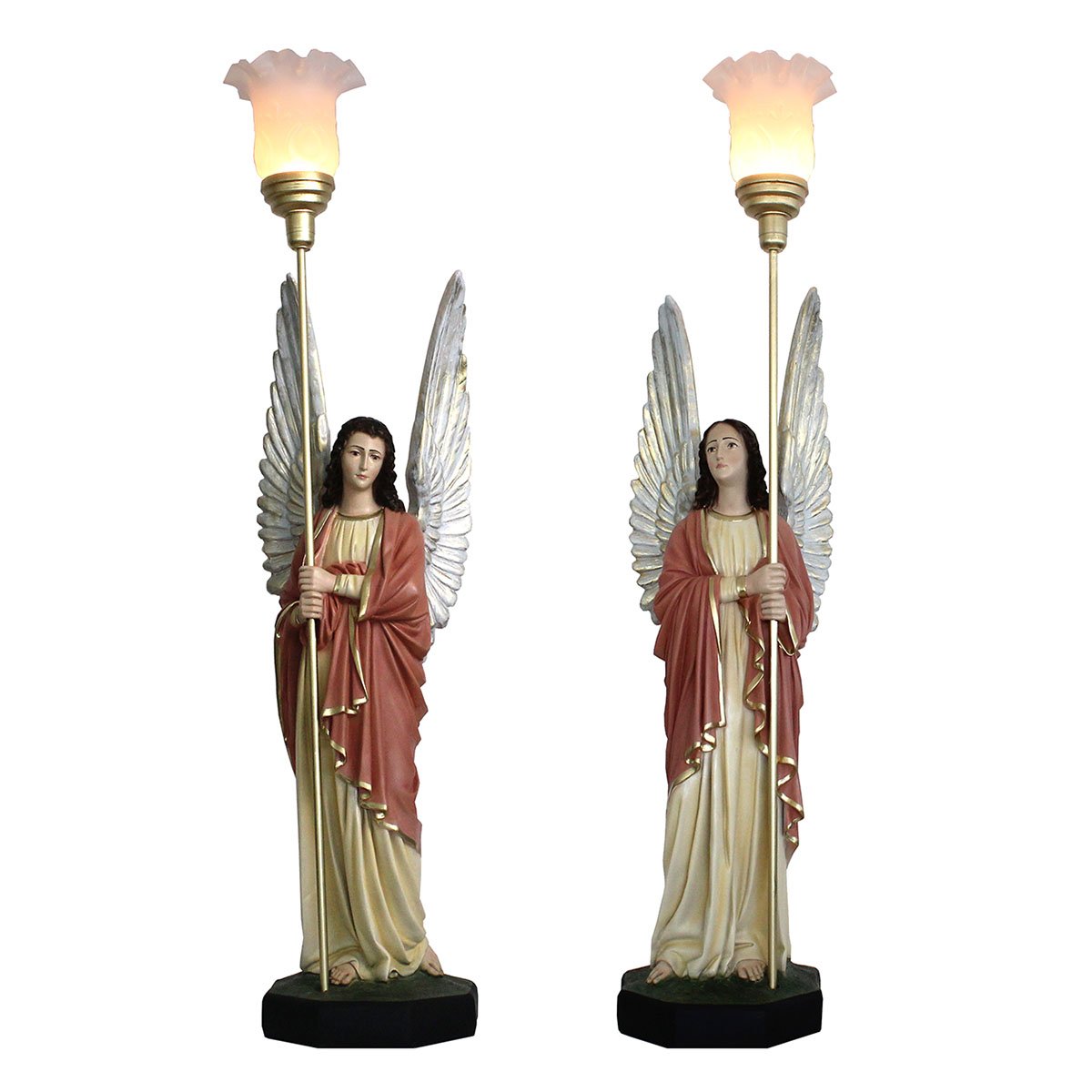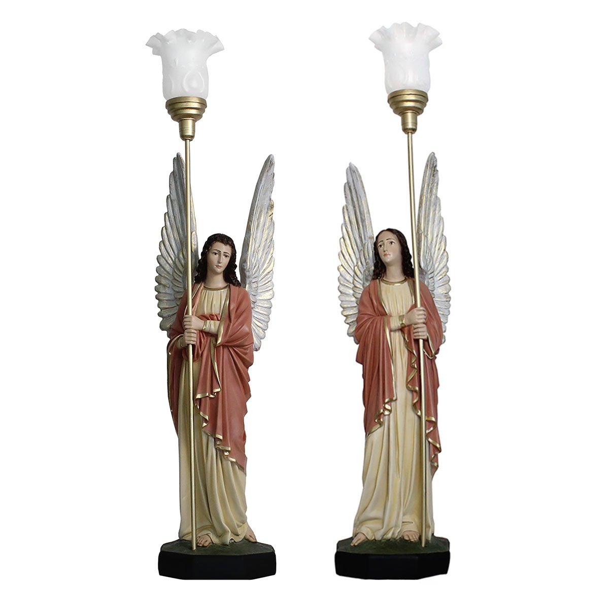 Conjunto de Anjos Adoradores Rose e Areia de Resina Nacional