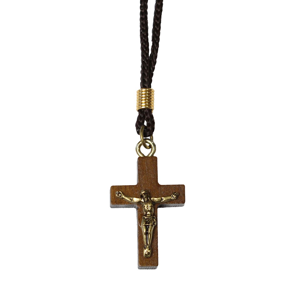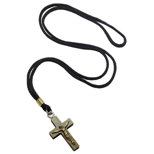 Cordão com Crucifixo em madeiraaplique de Cristo em Ouro velho . Medindo aproximadamente 35cm de altura, cruz 3cm de altura e 2cm de largura.