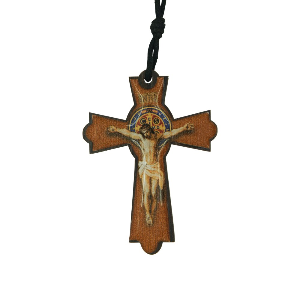 Cordão Crucifixo de São bento Madeira Resinada 3mm