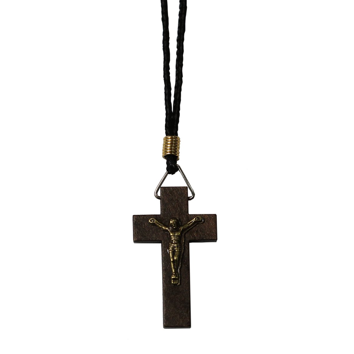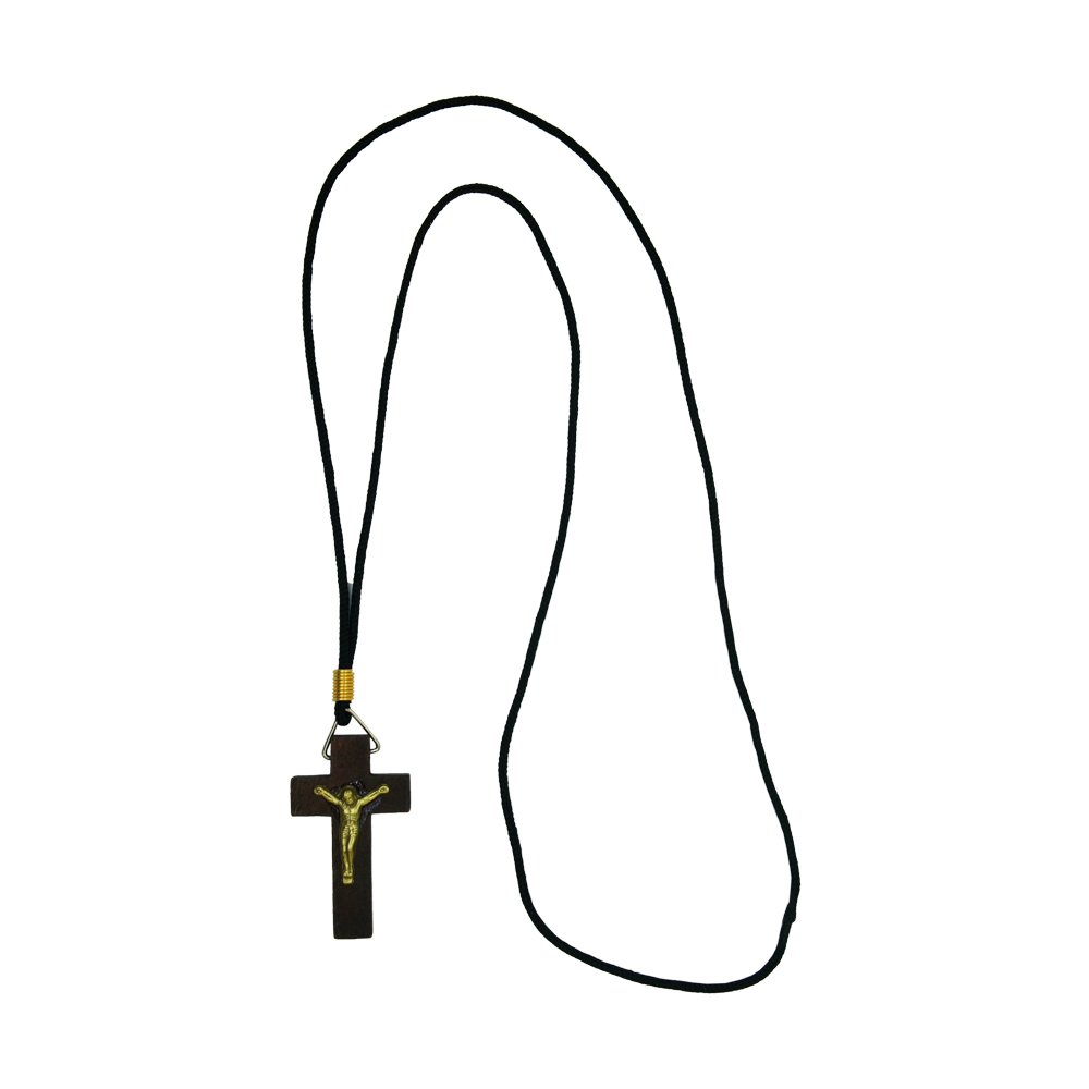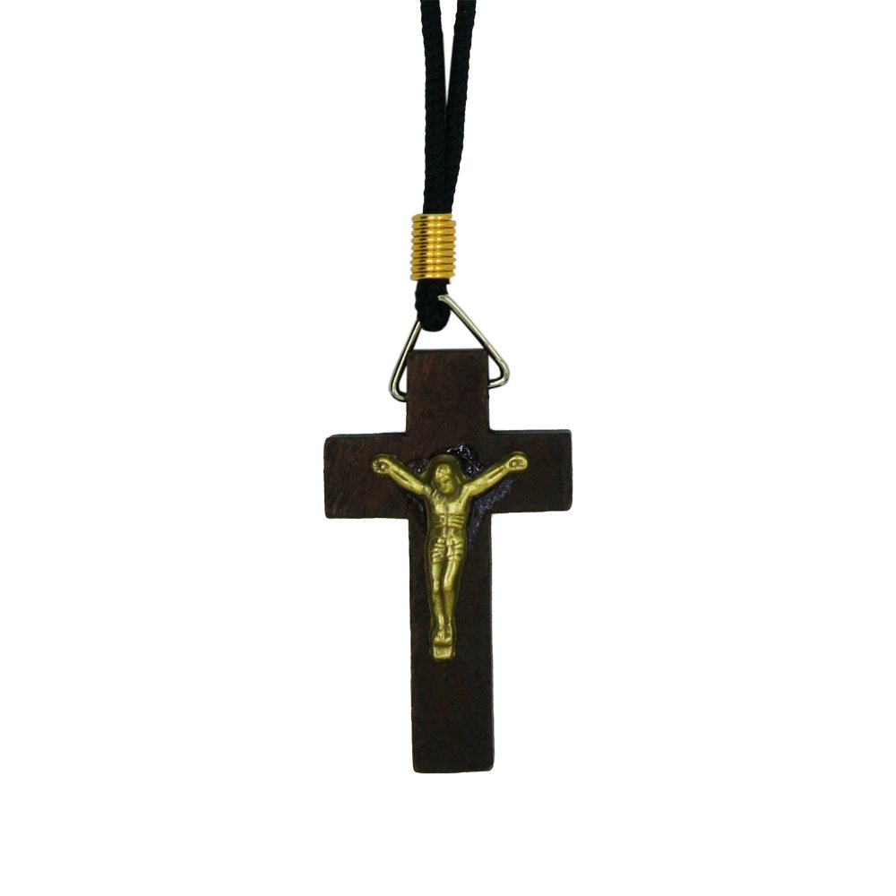 Cordão com Cruz em Madeira Marrom e Cristo em ouro velho.