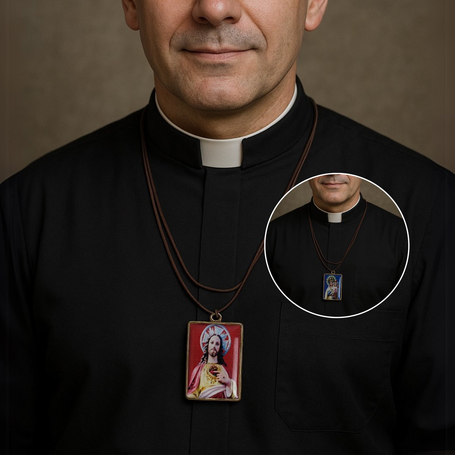 Cordão Medalha Sagrado Coração de Jesus e Nossa Senhora do Carmo