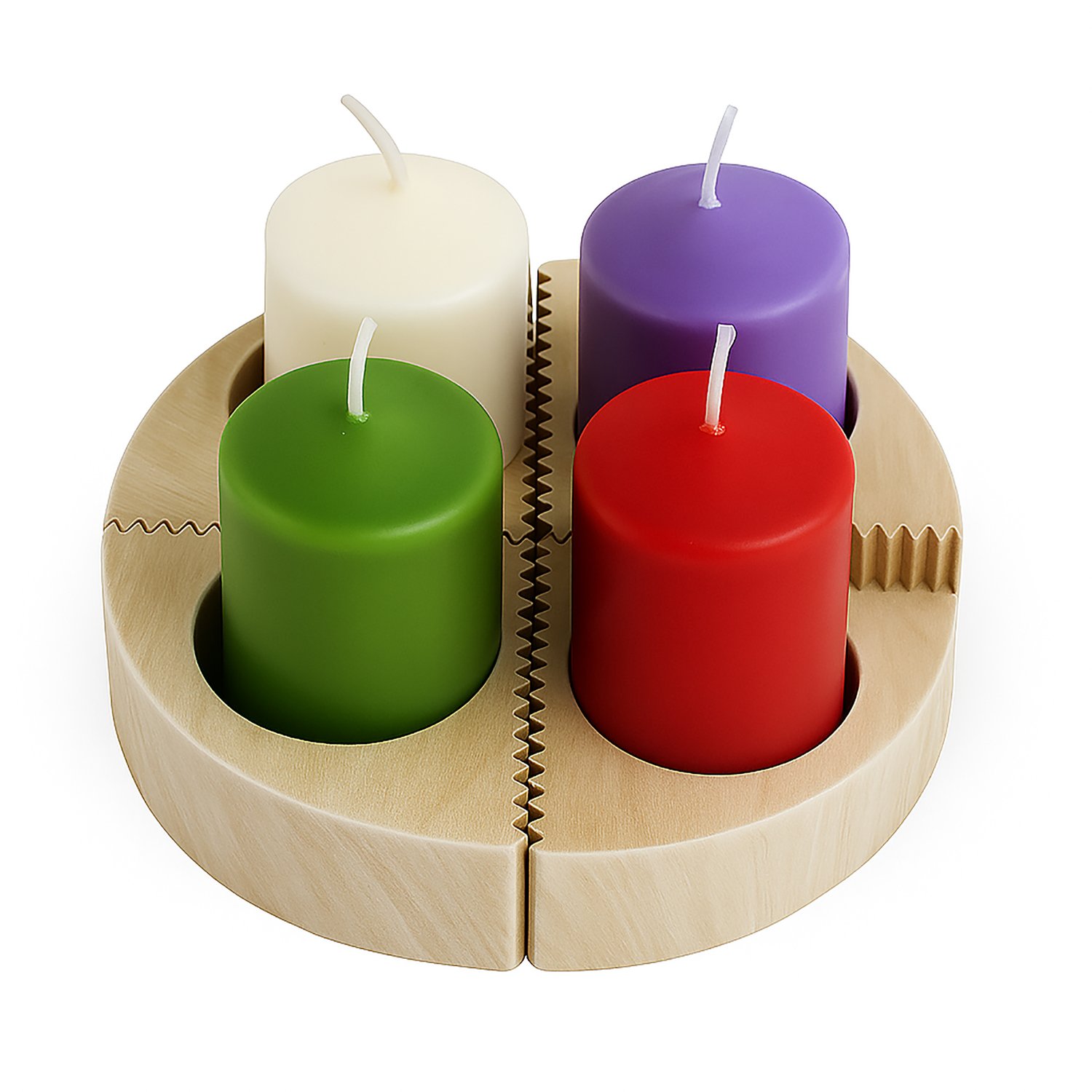 Acompanha (4) velas votiva mini, nas cores: vermelha, roxo, verde e branca.