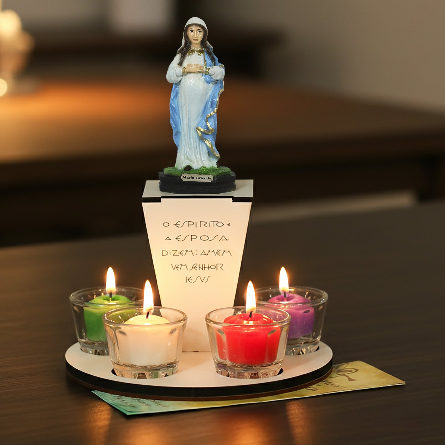 Coroa do Advento Vela e Imagem de Nossa Senhora Grávida