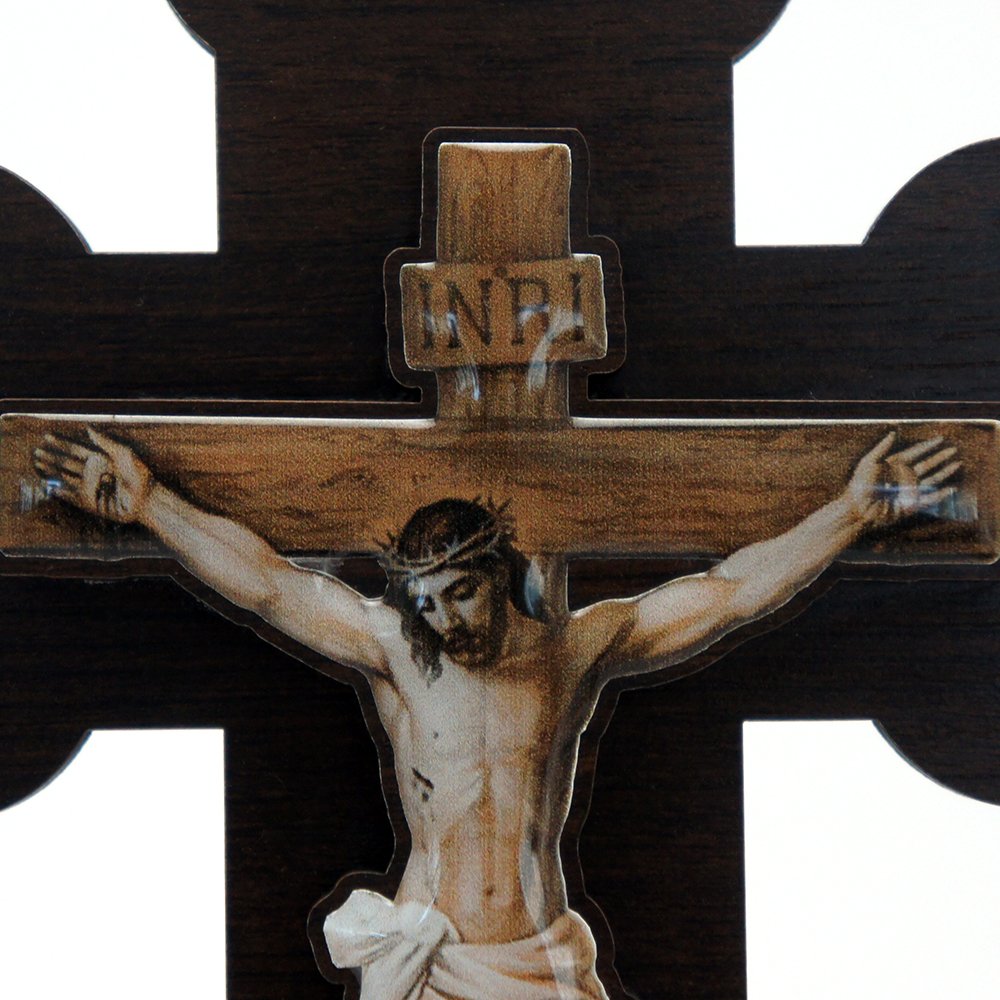 Crucifixo em MDF com porta água benta e acabamento em adesivo resinado, proporcionando maior durabilidade.