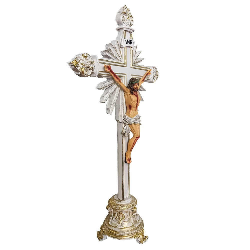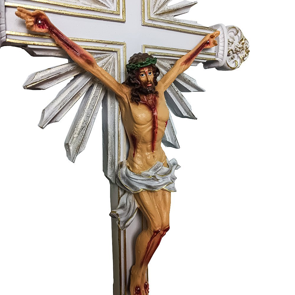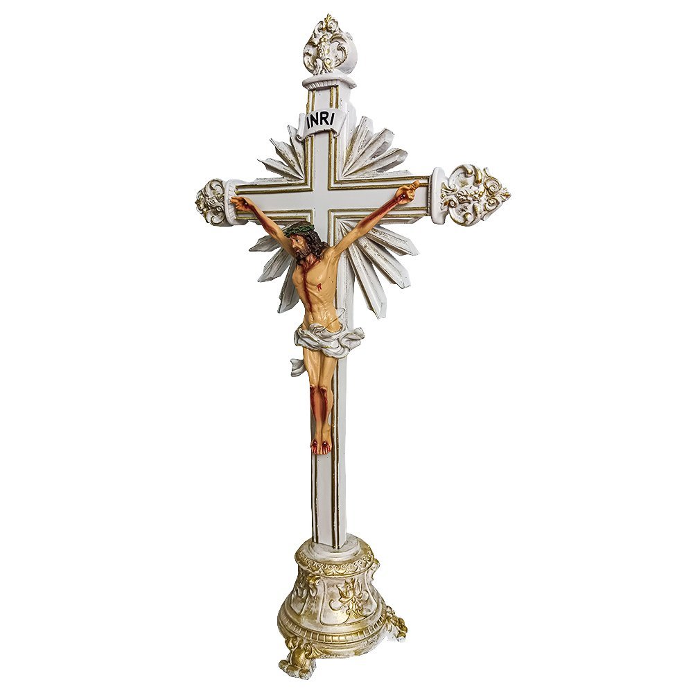 O crucifixo é diferente da cruz usada por várias correntes cristãs. O crucifixo é uma representação de Jesus na cruz de dupla travessa, também chamada de Cruz Episcopal ou Patriarcal, que nesta cruz na travessa superior mais curta, tem uma tabuleta pregada com a inscrição I.N.R.I., que significa Iesus Nazarenus Rex Iudaeorum (Jesus de Nazaré, Rei dos Judeus), e referido na história do cristianismo.