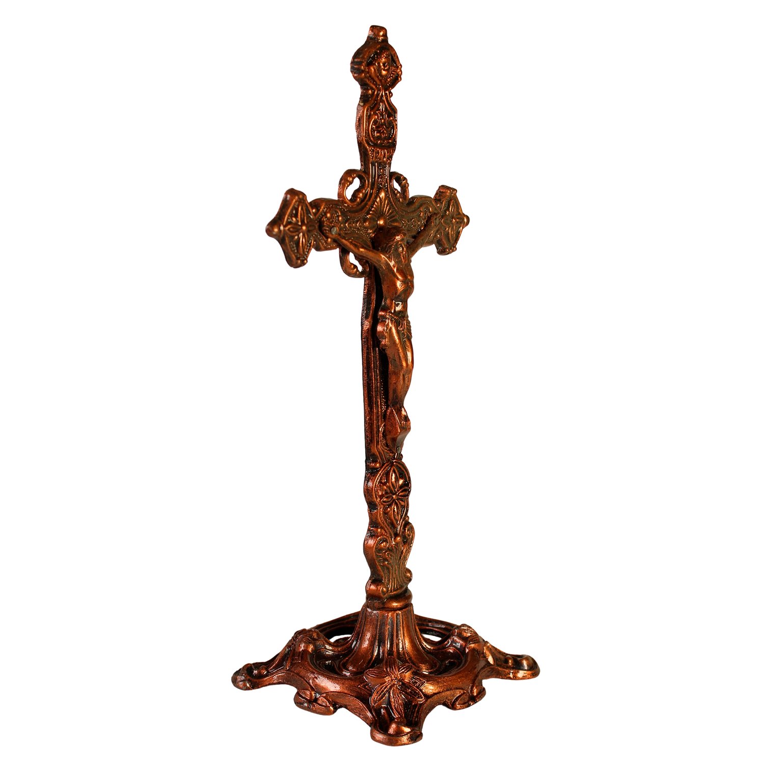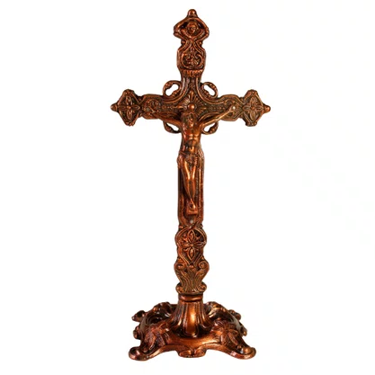 Crucifixo de Mesa em Metal Bronze - 29 cm