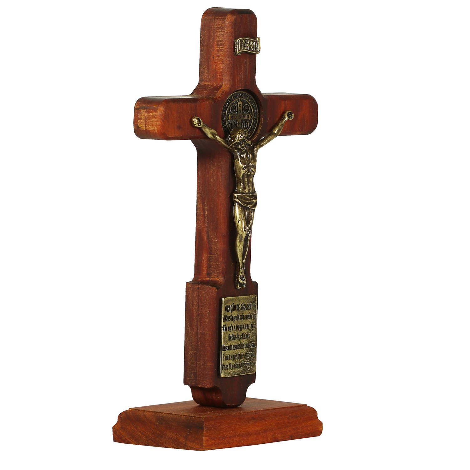 Crucifixo de Mesa São Bento Ouro Velho - 20 x 8 cm