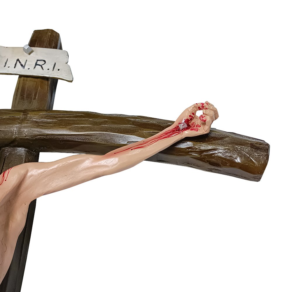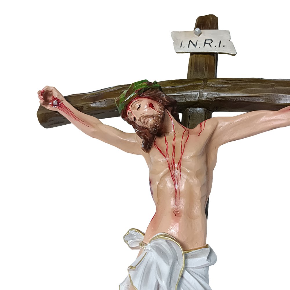 O crucifixo é diferente da cruz usada por várias correntes cristãs. O crucifixo é uma representação de Jesus na cruz de dupla travessa, também chamada de Cruz Episcopal ou Patriarcal, que nesta cruz na travessa superior mais curta, tem uma tabuleta pregada com a inscrição I.N.R.I., que significa Iesus Nazarenus Rex Iudaeorum (Jesus de Nazaré, Rei dos Judeus), e referido na história do cristianismo.