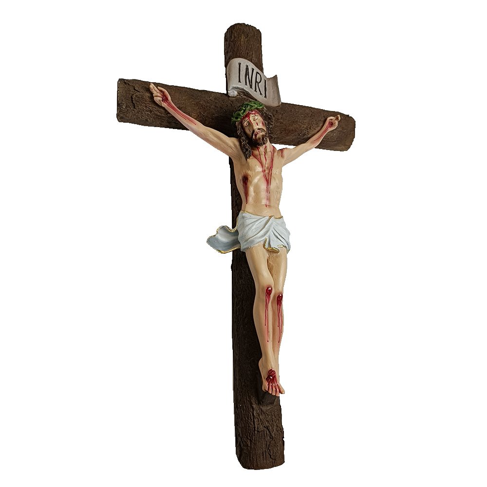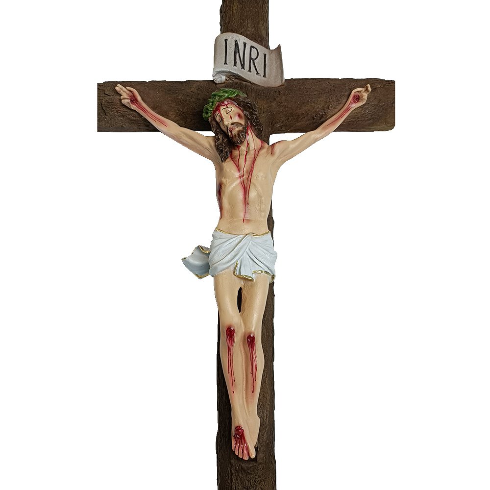 O crucifixo é diferente da cruz usada por várias correntes cristãs. O crucifixo é uma representação de Jesus na cruz de dupla travessa, também chamada de Cruz Episcopal ou Patriarcal, que nesta cruz na travessa superior mais curta, tem uma tabuleta pregada com a inscrição I.N.R.I., que significa Iesus Nazarenus Rex Iudaeorum (Jesus de Nazaré, Rei dos Judeus), e referido na história do cristianismo.