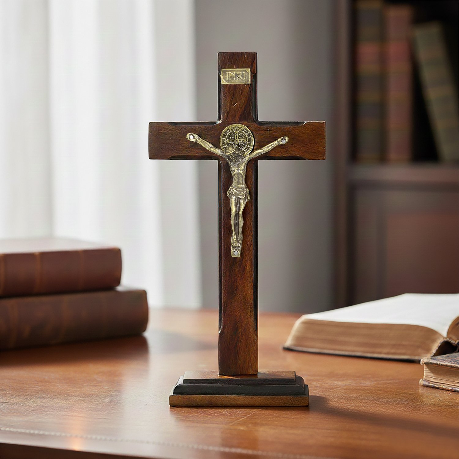 Crucifixo de Parede e Mesa em Madeira São Bento