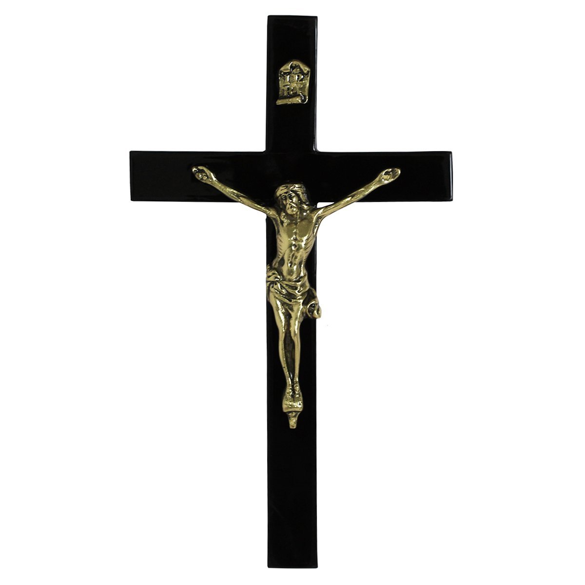 Crucifixo de Parede em Madeira Revestida de Preto Cristo Bronze
