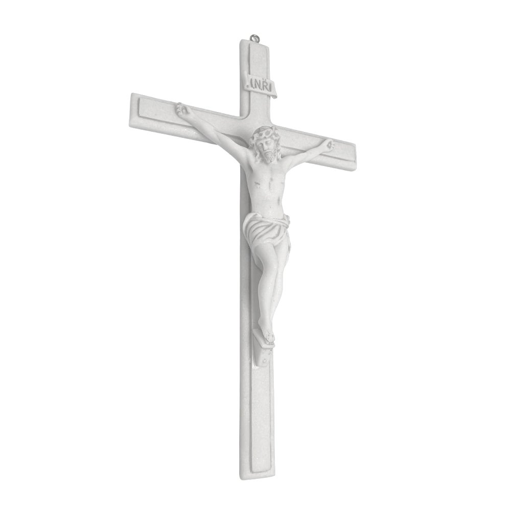 O crucifixo é diferente da cruz usada por várias correntes cristãs. O crucifixo é uma representação de Jesus na cruz de dupla travessa, também chamada de Cruz Episcopal ou Patriarcal, que nesta cruz na travessa superior mais curta, tem uma tabuleta pregada com a inscrição I.N.R.I., que significa Iesus Nazarenus Rex Iudaeorum (Jesus de Nazaré, Rei dos Judeus), e referido na história do cristianismo.
