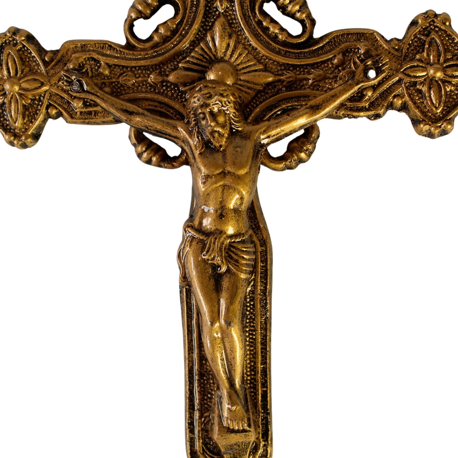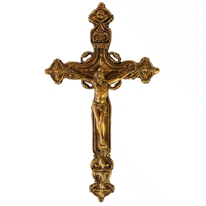Crucifixo de Parede em Metal Ouro Velho - 24 cm