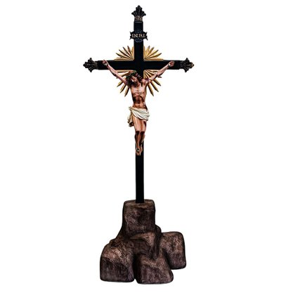 Crucifixo e Cristo em Resina com Pedestal