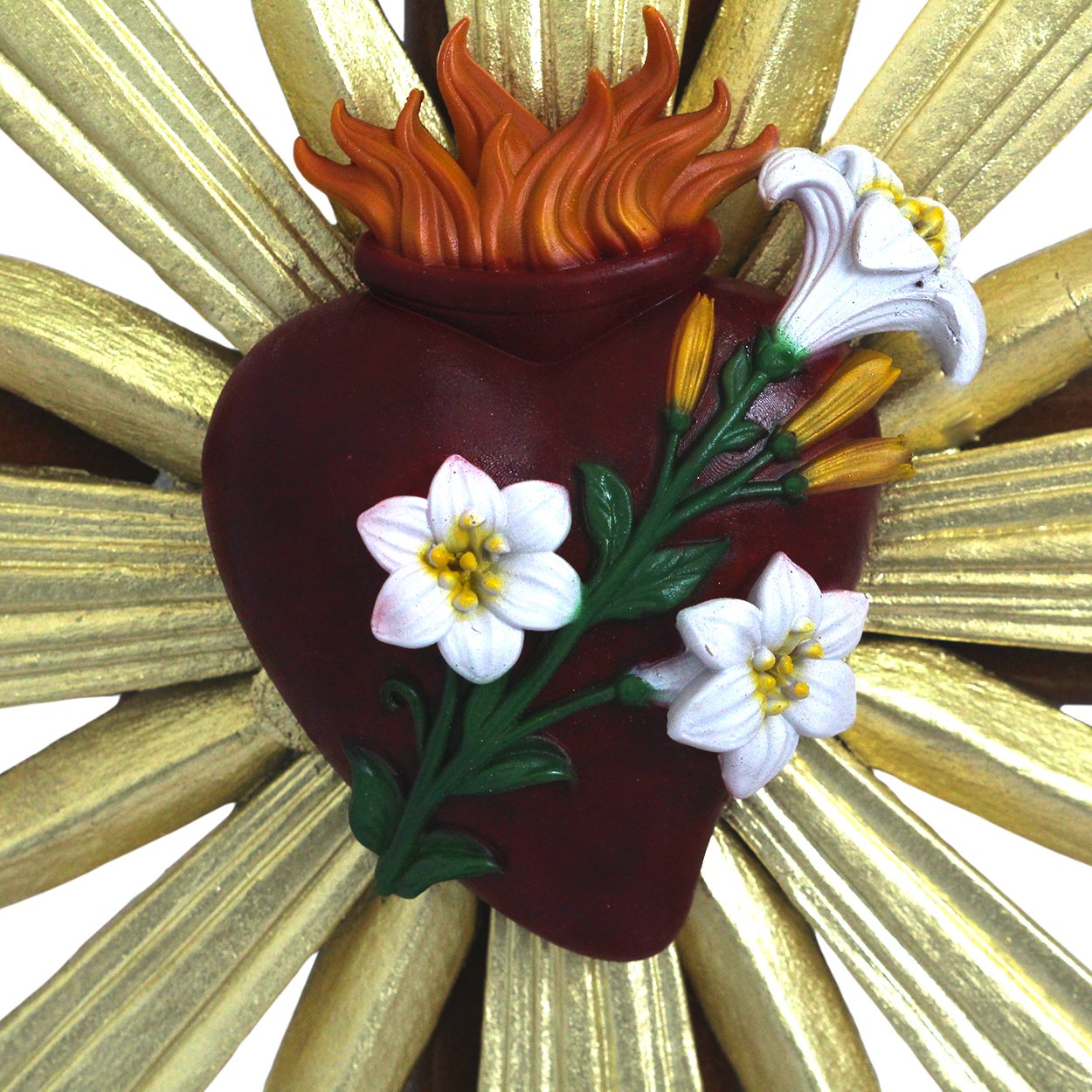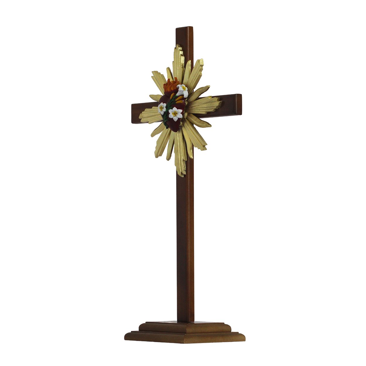 Cruz de Madeira Parede e Mesa Resplendor e Coração
