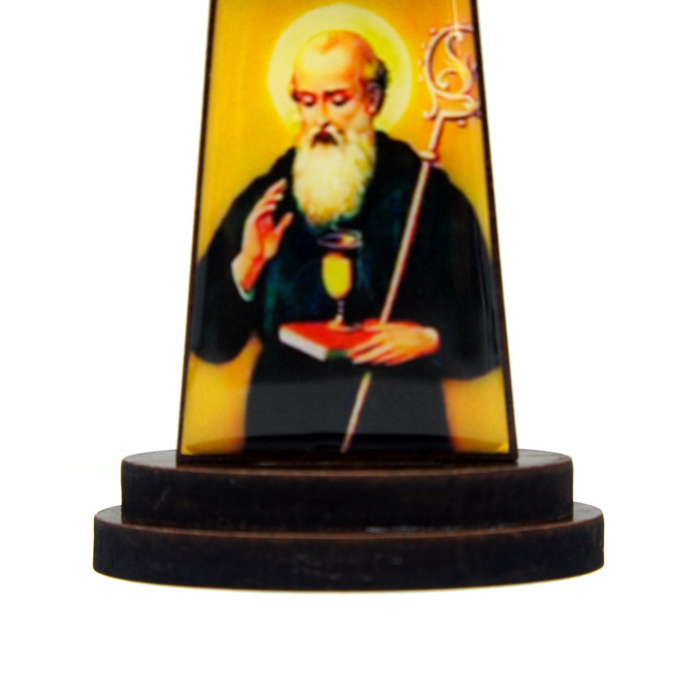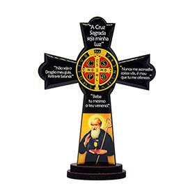 A Cruz sagrada seja a minha Luz. Não seja o dragão o meu guia. Retira-te satanás. Nunca me aconselhe coisas vãs. É do mal o que tu me oferece. Beba tu mesmo do teu veneno. Rogai por nós Bem Aventurado São Bento, para que sejamos dignos das promessas de Cristo.