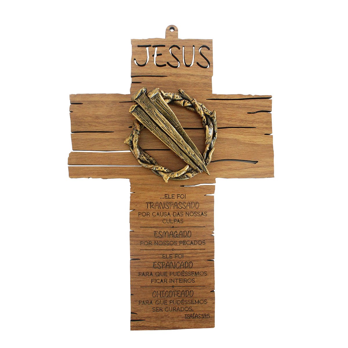 Cruz de Parede Cravos em Mármore com Pintura Bronze Semana Santa