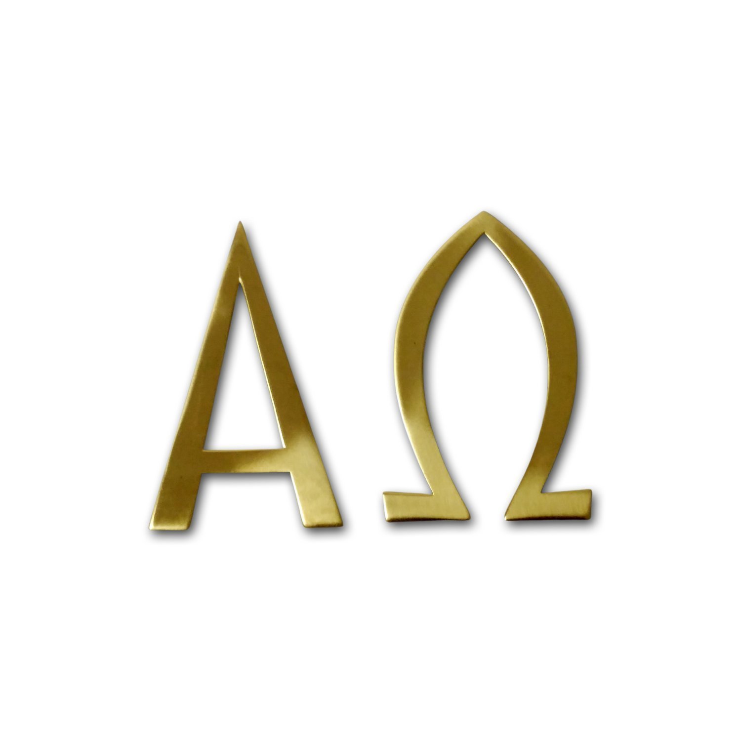 ALFA E OMEGA DECORATIVO PARA ALTAR[BR][BR]MATERIAL: METAL DOURADO[BR]DIMENSOES: 10 CM DE ALTURA. 6 CM DE LARGURA E 2 MM DE ESPESSURA[BR]PESO: 120G