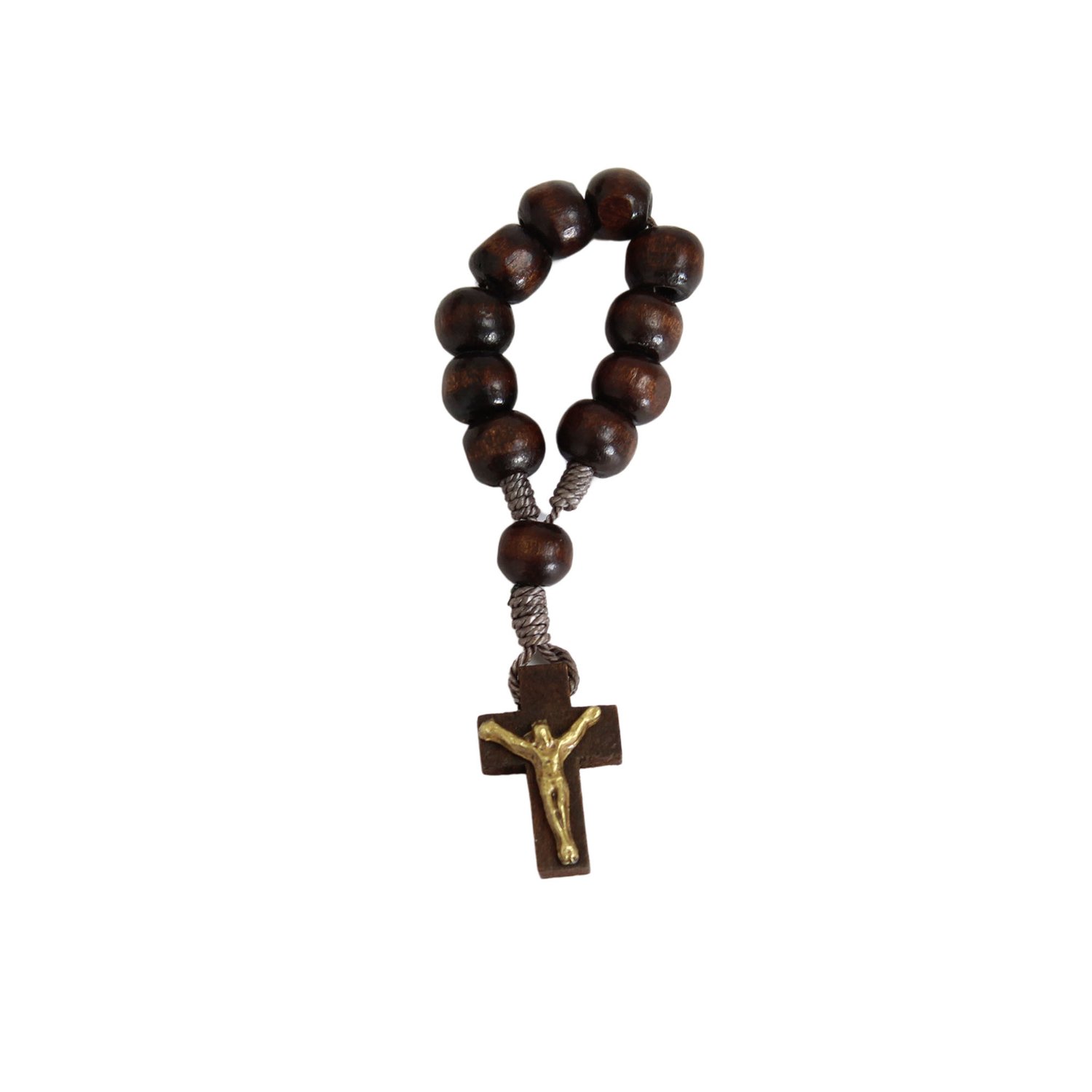 Dezena Madeira Marrom e Crucifixo - 8 Mm