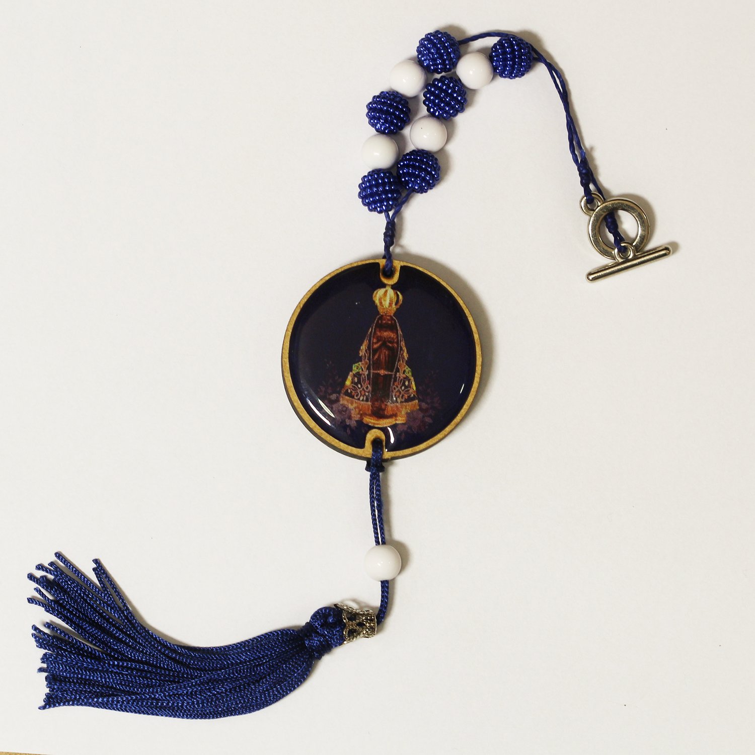 Dezena para Carro de Nossa Senhora Aparecida Conta Azul Pompom