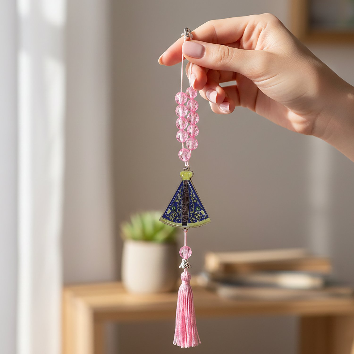 Dezena para Carro de Nossa Senhora Aparecida Contas Semi Cristal Rosa