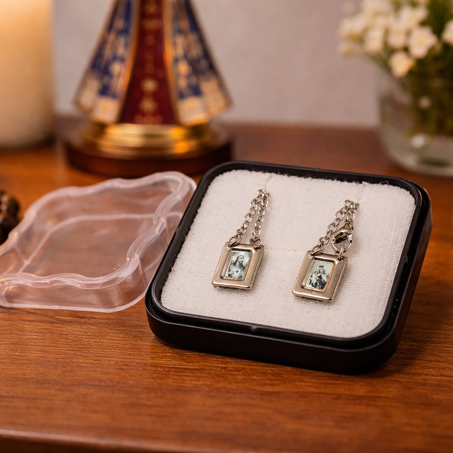 Escapulário Inox Quadrangular Foto Preto e Branco de Nossa Senhora do Carmo Infantil