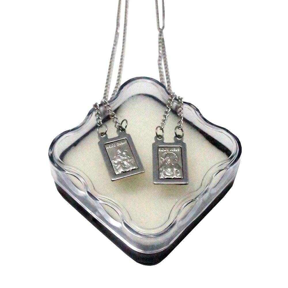 Escapulário Inox Quadrangular Relevo Fosco Nossa Senhora do Carmo 3mm