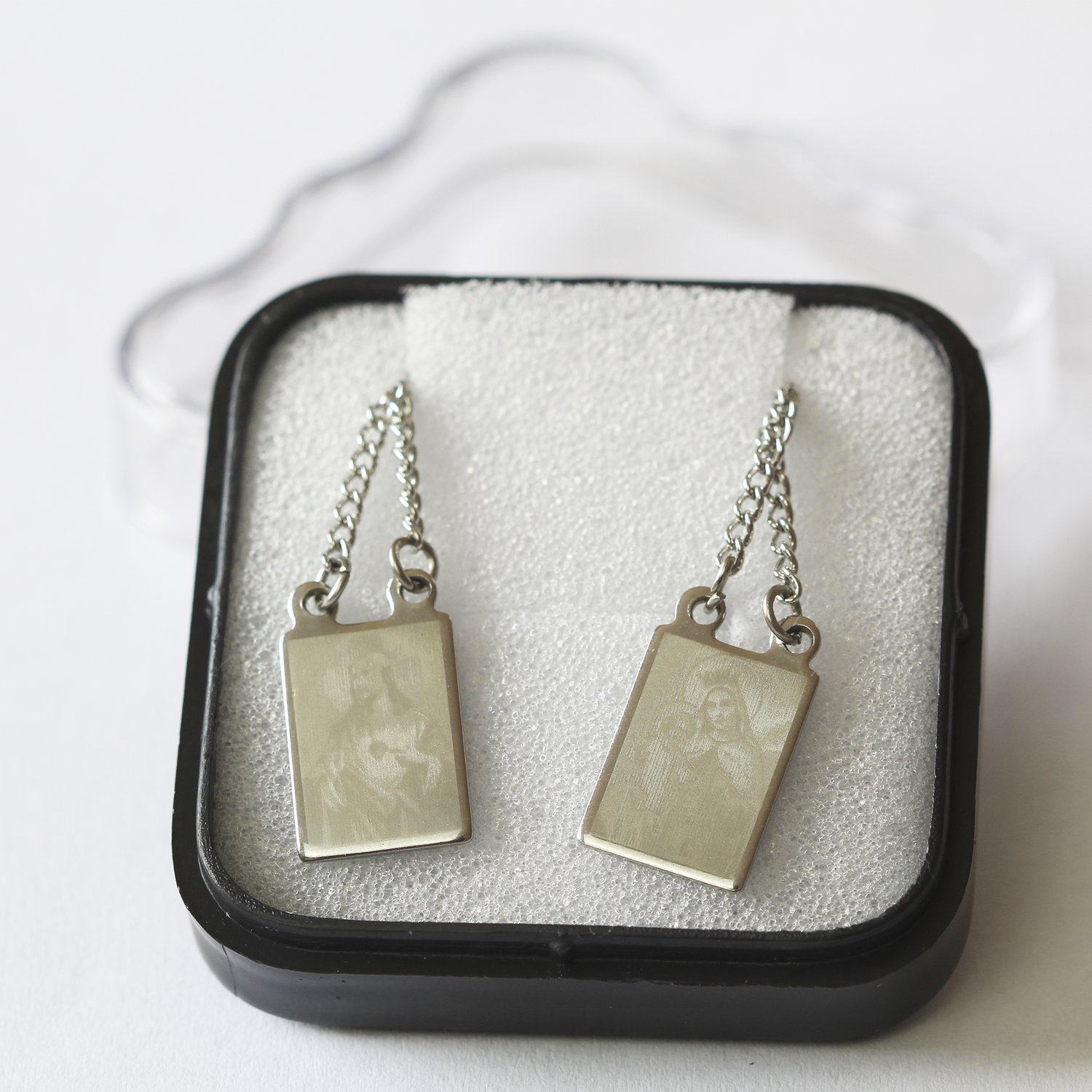 Escapulário Nossa Senhora do Carmo em inox - Gravado a laser;